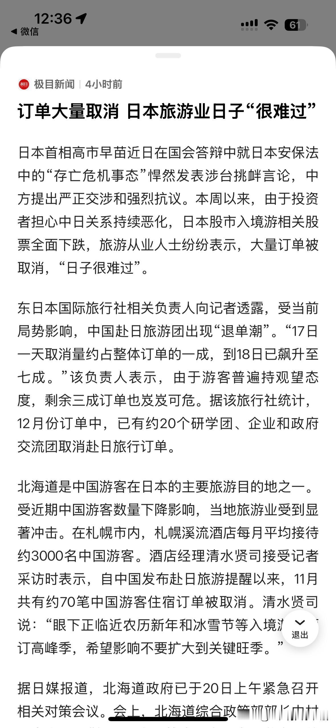 本周以来,由于投资者担心中日关系持续恶化,日本股市入境游相关股票全面下跌,旅游从业人士纷纷表示,大量订单被取消,“日子很难过”。