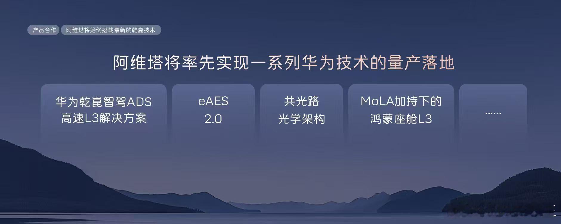 阿维塔是最早一批和华为乾崑合作的车企,阿维塔所有车型,将首批搭载华为乾崑最先进的技术。阿维塔与华为乾崑全面深化战略合作