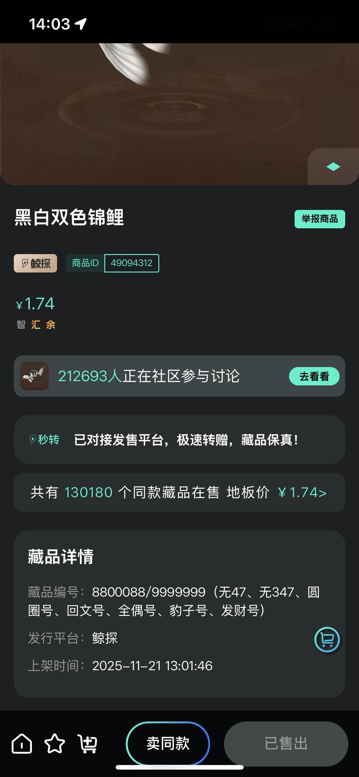 关于今天花费1.74获得20倍回报的乐事。 今天,我完成了一笔堪称“神话”的投资!下午在Xmeta上,我几乎是随手花了1.74元,抢购到了这枚编号为8800088的鲸探黑白双色鲸鲤。这个吉利的数字让我心生喜爱,但万万没想到,幸运女神会如此迅速地降临。 就在刚才,一位识货的藏友找到我,直言被这个独一无二的编号和经典的黑白配色所吸引,并开价30元希望我能够转让!我的心瞬间雀跃起来。1.74元对比30元,这不仅仅是赚了二十多块钱,更是超过1700% 的惊人回报率! 我几乎要按捺不住心中的狂喜,迅速点击了确认交易。当收款提示弹出时,一种巨大的成就感和捡到宝的兴奋感将我包围。这微不足道的一步,竟成了我今日最明智的“商业决策”。 这尾灵动的数字鲸鲤,不仅为我游来了财富,更游来了一份“开门红”的绝佳彩头。它让我坚信,在数字收藏的浪潮中,独特的眼光加上一点点运气,真的能创造出意想不到的惊喜!鲸探藏品 鲸探数字资产 鲸探数字艺术展 鲸探指数 回收鲸探 小红鲸探店 鲸探优先购 鲸探科技