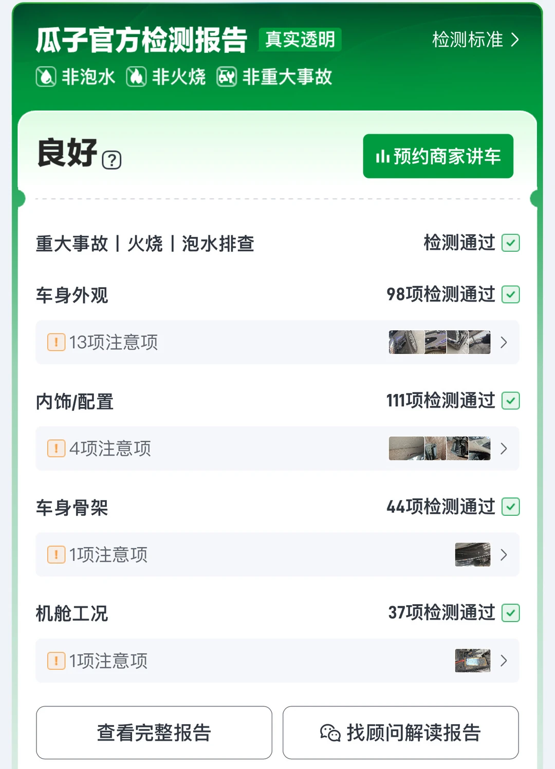 驾照躺了好几年,平时总蹭朋友的车实在不好意思,偶尔也很想来趟说走就走的旅行,预算有限果断冲二手车!朋友推荐的瓜子二手车APP太香了——源头车直供不加价,每台车都有检测报告,电车还带专属电池报告! 一眼相中22年的奔驰E300,才跑8万公里,才32w,价格比新车便宜一半!预约试车后,我担心户前复检有问题怎么办,交付那边说他们可以支持复检,如果车况有问题也会给我退车,也会直接在APP上退定金,瞬间安心很多,工作人员拿着报告逐点讲车况,连一些细小划痕都没放过,试驾还提醒我感受换挡和隔音,最安心的是,过户前复检有问题能退车退定金,售后还特别好,购车之后发现所购车辆在交付前存在重大事故、火烧、泡水问题,可终身原价退车 现在朋友都来问我买车的事,我都会把瓜子app介绍给身边的朋友,上面油车、新能源车款超全,性价比直接拉满,想买二手车的闭眼冲!