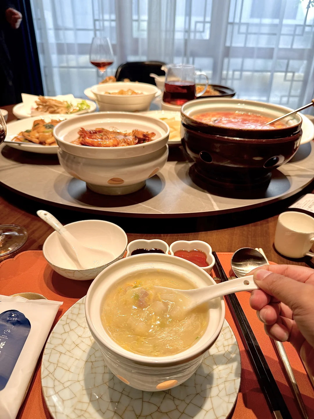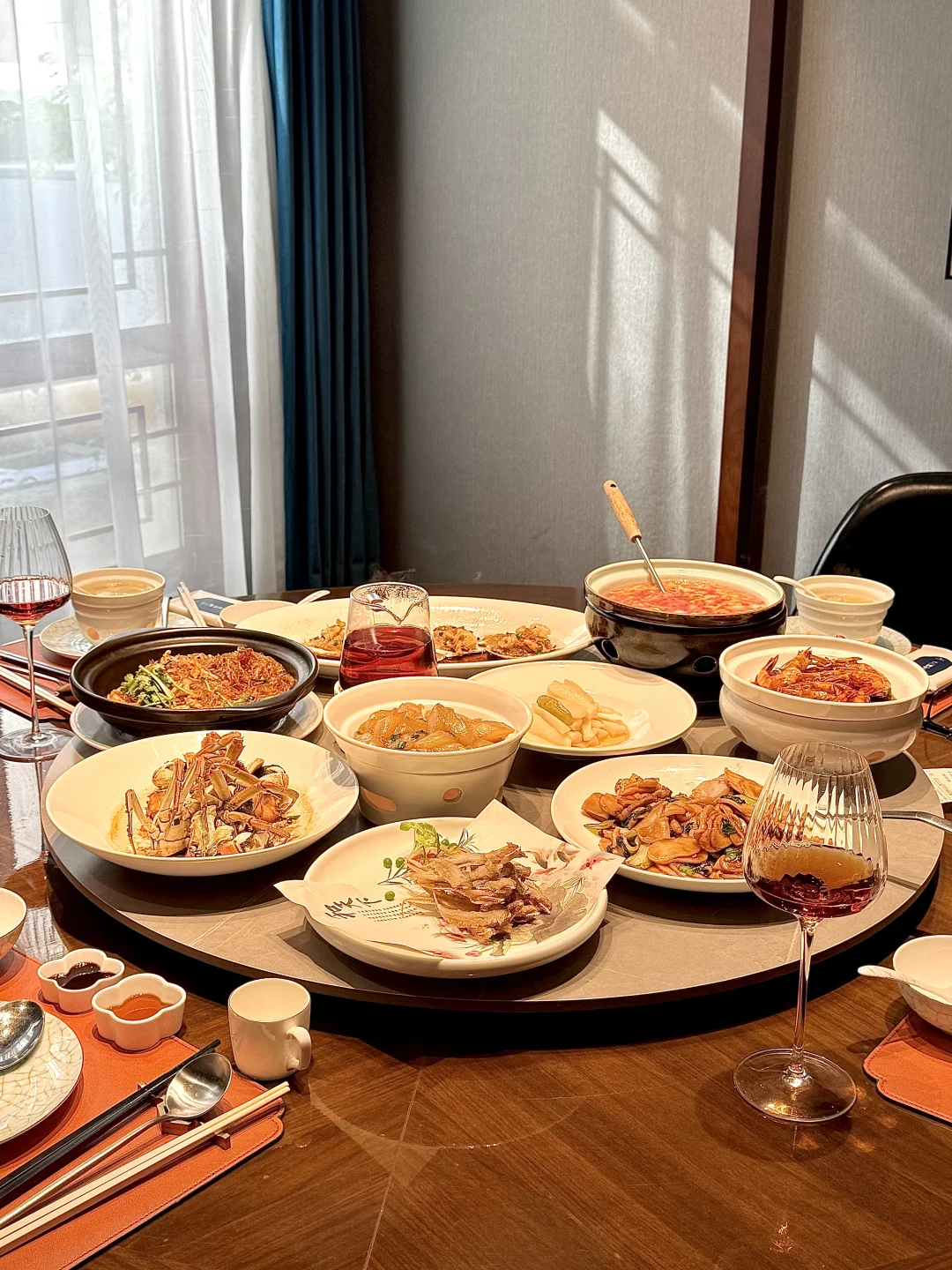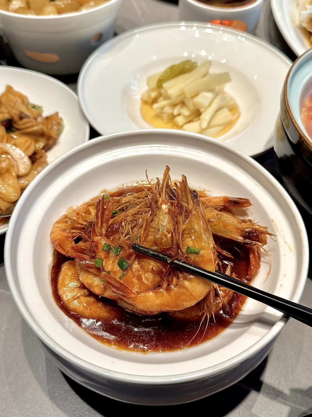请客是真有面‼️ 吃个饭像走进了颐和园,江南园林的风景让人心旷神怡,走在中式长廊里仿佛一幅油画🖼️ 明档点菜,螃蟹🦀都活奔乱跳的,各类宁波小海鲜看着都很新鲜 . 我们这桌才人均一百不到!你敢信? 豆瓣酱肉沫蒸大闸蟹都是可肥的大闸蟹,个个带膏,豆瓣酱入味还有肉末,这鲜味垂涎欲滴 蒜蓉粉丝蒸元贝,都个个饱满入口嫩得飙汁~ 还有油爆大虾,香酥小齐🐟,时蔬花胶羹……道道精彩啊,这性价比真值啊 . 旁边还有大的包厢,能透过窗看到外面庭院呢生日🎂看到还能提前布置,真是宴请,尾牙必定之所啊