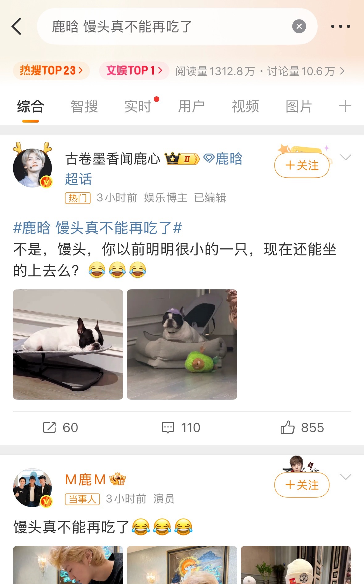 不是 我才几分钟没打开热搜 鹿晗这个词条就有10万➕的讨论量了