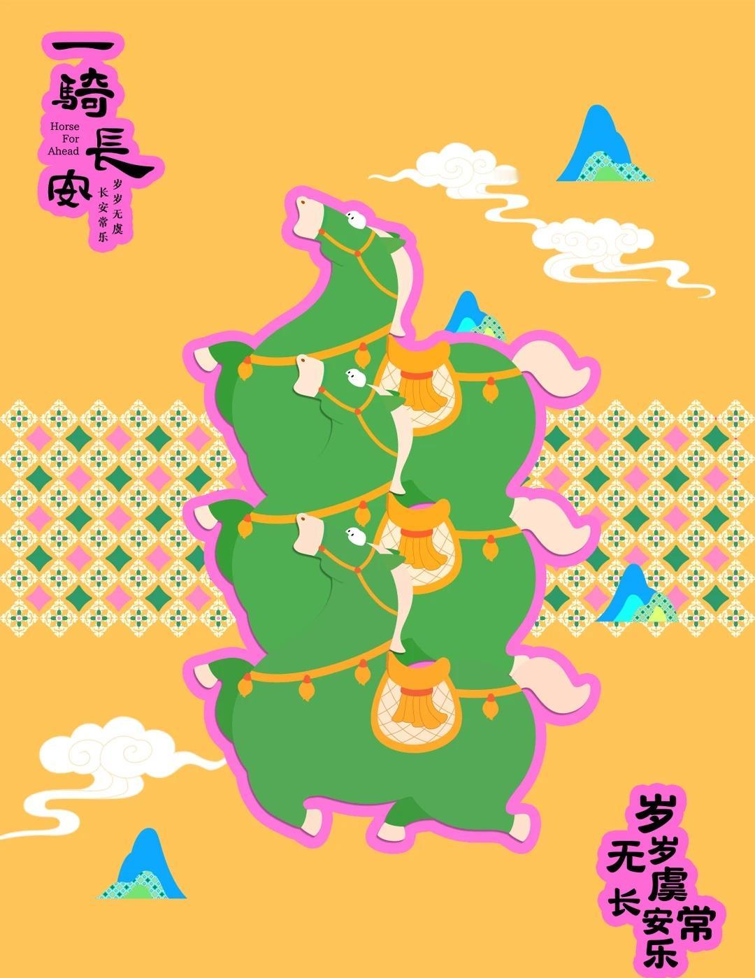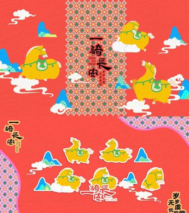 三彩贺岁|马年双旦新年IP唐马 马年插画马年ip双旦美陈美陈马年美陈马