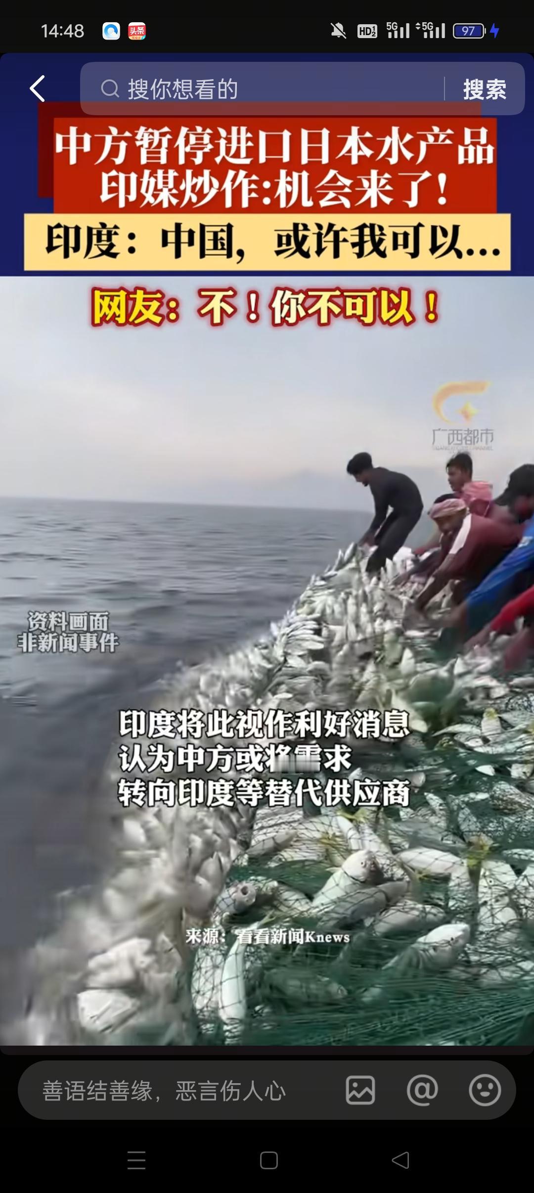 印度水产大家敢吃吗?反正我是不敢吃的。最近因为高市早苗涉台言论缘故,我国暂停了进口日本的水产品。就在这个时候,印度闻着味来了,仿佛看到了商机,纷纷出手想要中国来买他们的水产品。但是网友们纷纷表示不想要,真的,他们的卫生有点堪忧啊,虽说不能以偏概全,但还是有的隔应。你们说是不是!