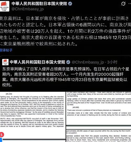 刚刚,上强度,中国驻日大使馆,发了一条推文!警示日本极右翼分子,日本军国主义恶名昭著,血债累累!提醒日本国民,这笔账是要清算的,不要跟着极右翼分子殉葬!昭示世界人民,人性不容践踏,正义需要弘扬,国际秩序需要世界各国共同维护。 这条推文不是空穴来风,最近日本极右翼分子的动作实在太嚣张,不敲打敲打他们,真以为历史能随便翻篇。 一群人打着“纪念战争亡灵”的幌子,在街头搞军国主义游行,举着当年的旭日旗招摇过市,嘴里还喊着美化侵略的口号,看得人牙根直痒痒。 他们甚至还在网上散布“南京大屠杀是谎言”“慰安妇是自愿的”等荒谬言论,妄图把二战时期的侵略罪行洗得一干二净。 中国驻日使馆这时候站出来发声,就是要戳破他们的伪装,让更多人看清极右翼分子的真实面目——他们不是在“缅怀历史”,而是在为军国主义招魂。 想想当年,日本军国主义发动的侵略战争,给中国带来了多大的灾难。14年抗战,3500万军民伤亡,多少家庭支离破碎,多少无辜生命倒在侵略者的屠刀下。 南京大屠杀中,三十多万手无寸铁的平民和放下武器的士兵惨遭杀害,731部队用活人做细菌实验,那些伤痛至今还刻在中国人的骨子里。 这些血债,每一笔都清清楚楚记在历史的账本上,极右翼分子想抹也抹不掉。 可现在,他们不仅不反思,反而变本加厉地美化侵略历史,修改教科书、参拜靖国神社、推动军事扩张,一步步试探国际社会的底线。 中国驻日使馆提醒日本国民别跟着殉葬,这话可不是危言耸听。当年日本军国主义就是把整个国家拖进了战争泥潭,最后落得个战败投降的下场,老百姓吃尽了苦头。 现在极右翼分子又想故技重施,要是日本国民真被他们忽悠了,跟着他们走军国主义老路,迟早会重蹈覆辙,到时候受苦的还是普通老百姓。 推文里说“人性不容践踏,正义需要弘扬”,这更是说出了世界人民的心声。 历史是最好的教科书,当年纳粹德国的下场和德国后来的忏悔形成了鲜明对比,德国靠真心道歉、赔偿受害者赢得了邻国的信任,而日本呢? 日本政府不仅不给受害国人民一个正式的道歉,还处处包庇极右翼分子的行径,这样的做法怎么可能赢得国际社会的尊重。 战后国际秩序是无数反法西斯烈士用鲜血换来的,容不得任何国家和势力破坏。日本极右翼分子想推翻这一秩序,恢复军国主义的荣光,这是全世界爱好和平的国家都不能容忍的。 中国驻日使馆的这条推文,既是对日本极右翼分子的严厉警告,也是对国际社会的呼吁——大家要团结起来,共同抵制军国主义死灰复燃。 这些天,不少日本有识之士也站出来发声,反对极右翼分子的所作所为,他们说“不能让先辈的罪行被遗忘,更不能让军国主义毁掉日本的未来”。 还有很多亚洲国家的媒体转载了中国驻日使馆的推文,纷纷表示支持中国的立场,认为必须警惕日本军国主义抬头。 日本极右翼分子要是还有点脑子,就该好好掂量掂量,别再执迷不悟。 历史血债迟早要清算,正义可能会迟到,但绝不会缺席。要是真把中国和亚洲各国逼急了,等待他们的只会是更严厉的反击。 希望日本国民能看清形势,别被极右翼分子绑上战车,只有彻底和军国主义划清界限,才能让日本真正走向和平发展的道路,这才是对历史负责,也是对自己的未来负责。
