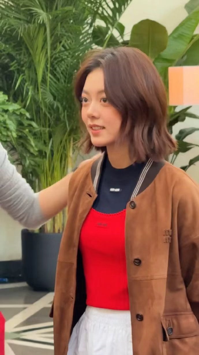 赵今麦美拉德look,是美拉德发色到美拉德外套,再搭配上这个短发造型,鬼马少女麦