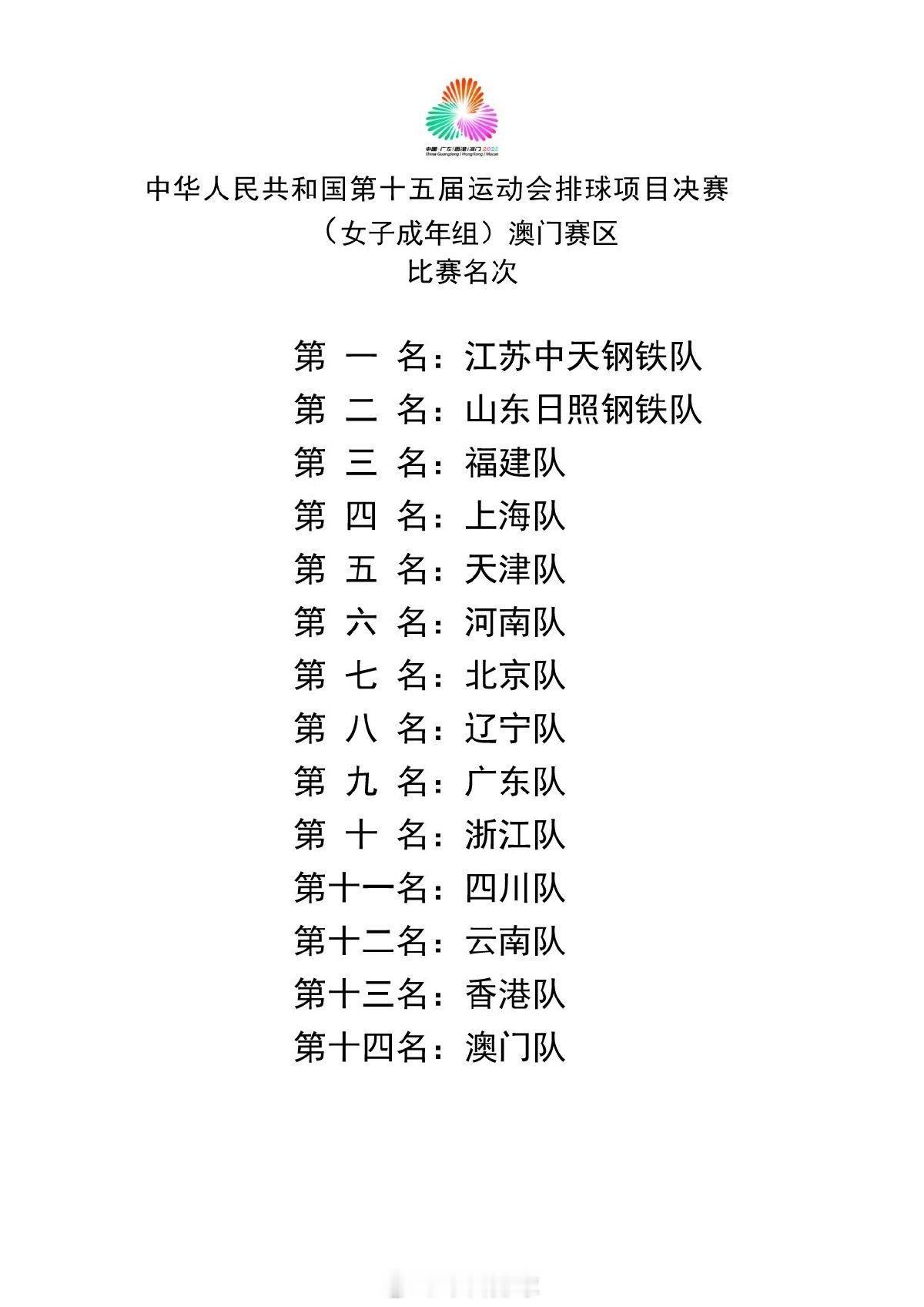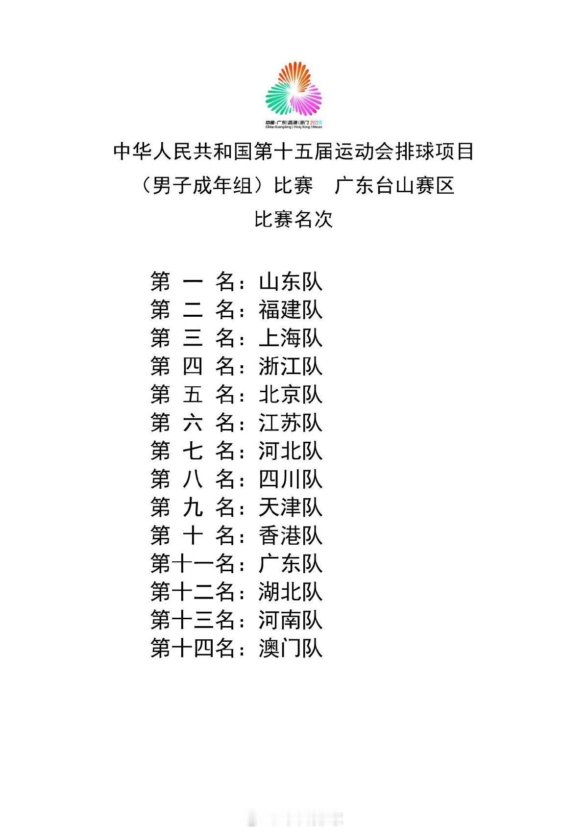 2025 男排和女排成年组比赛最终名次。