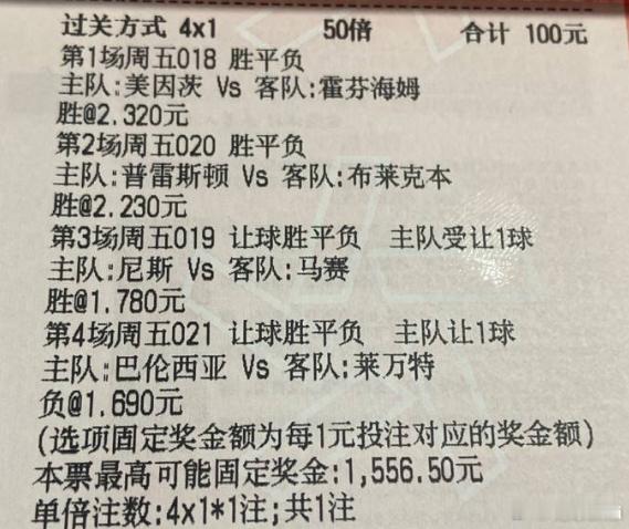 亮哥今日实单018 德甲 美因茨vs霍芬海姆 :胜 2-1 3-1019 法甲 尼斯vs马赛 :让胜 1-1 2-1020 英冠 普雷斯顿vs布莱克本 :胜 2-0 2-1021 西甲 巴伦西亚vs莱万特 :让负 0-1 1-1亮哥今日二串推荐:018胜 020胜亮哥今日四串推荐:018胜 020胜 019让胜 021让负