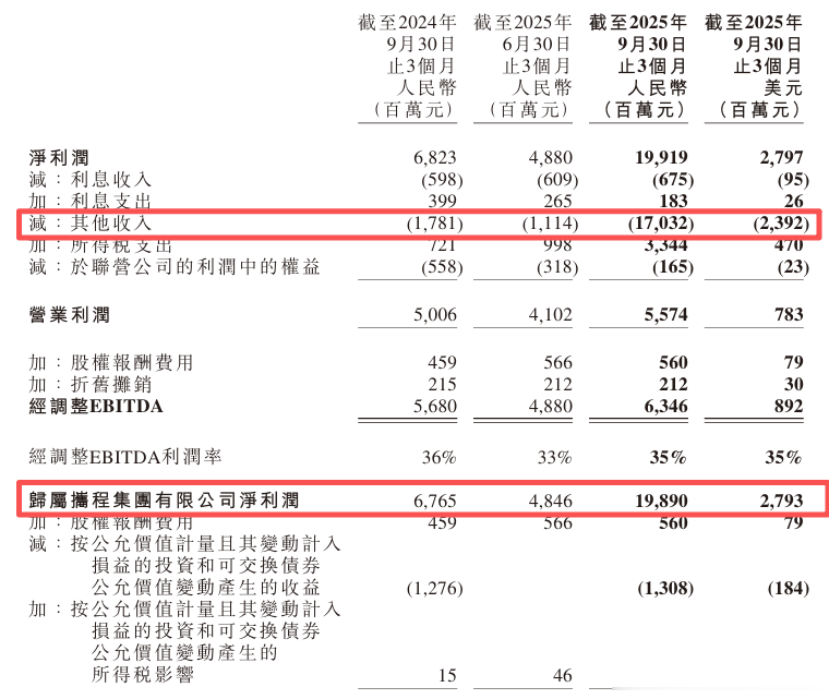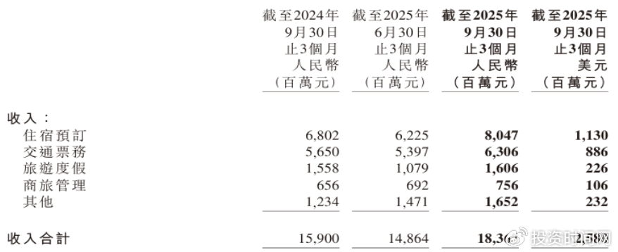 携程集团2025年第三季度业绩情况(公认会计准则)