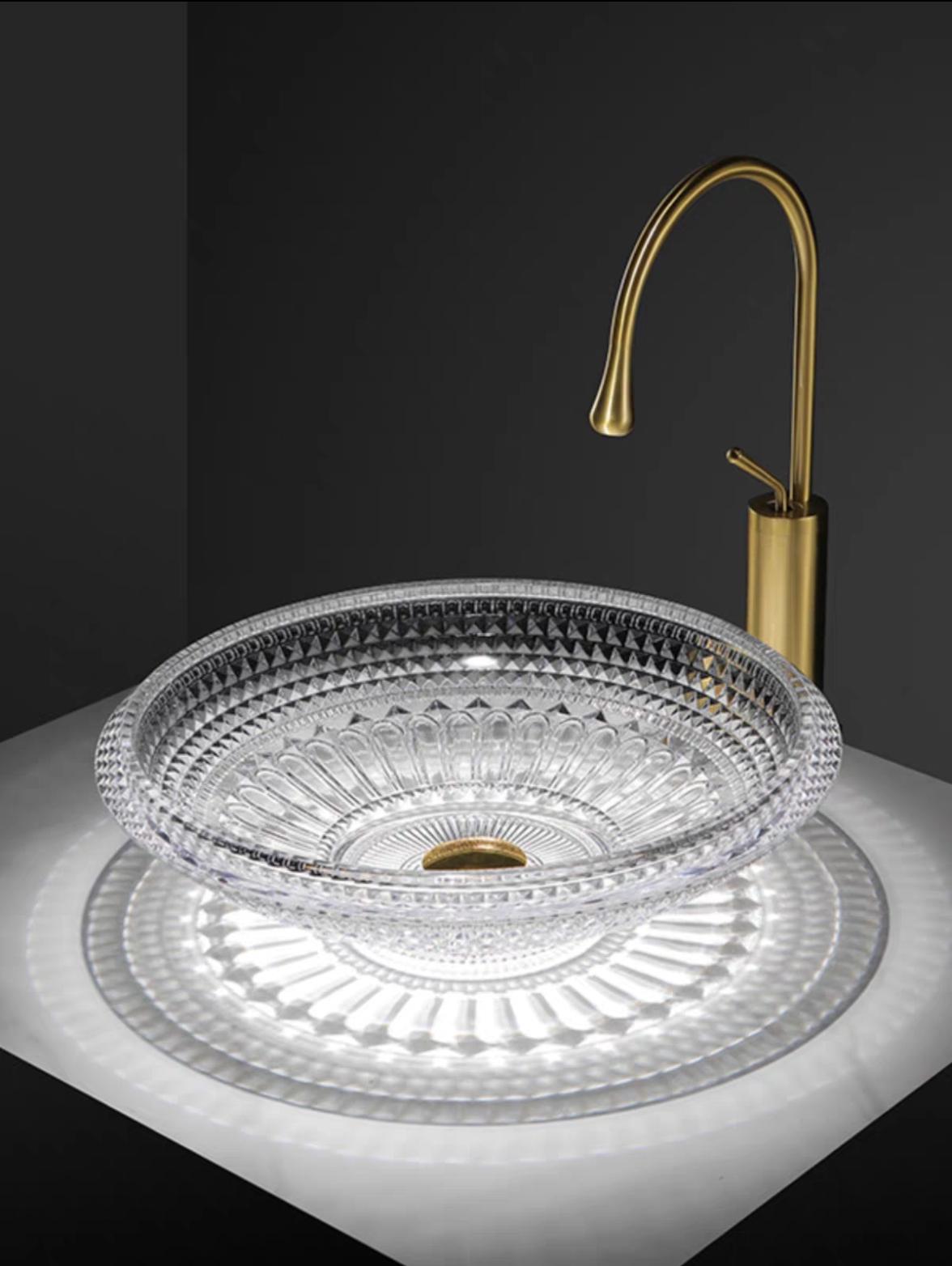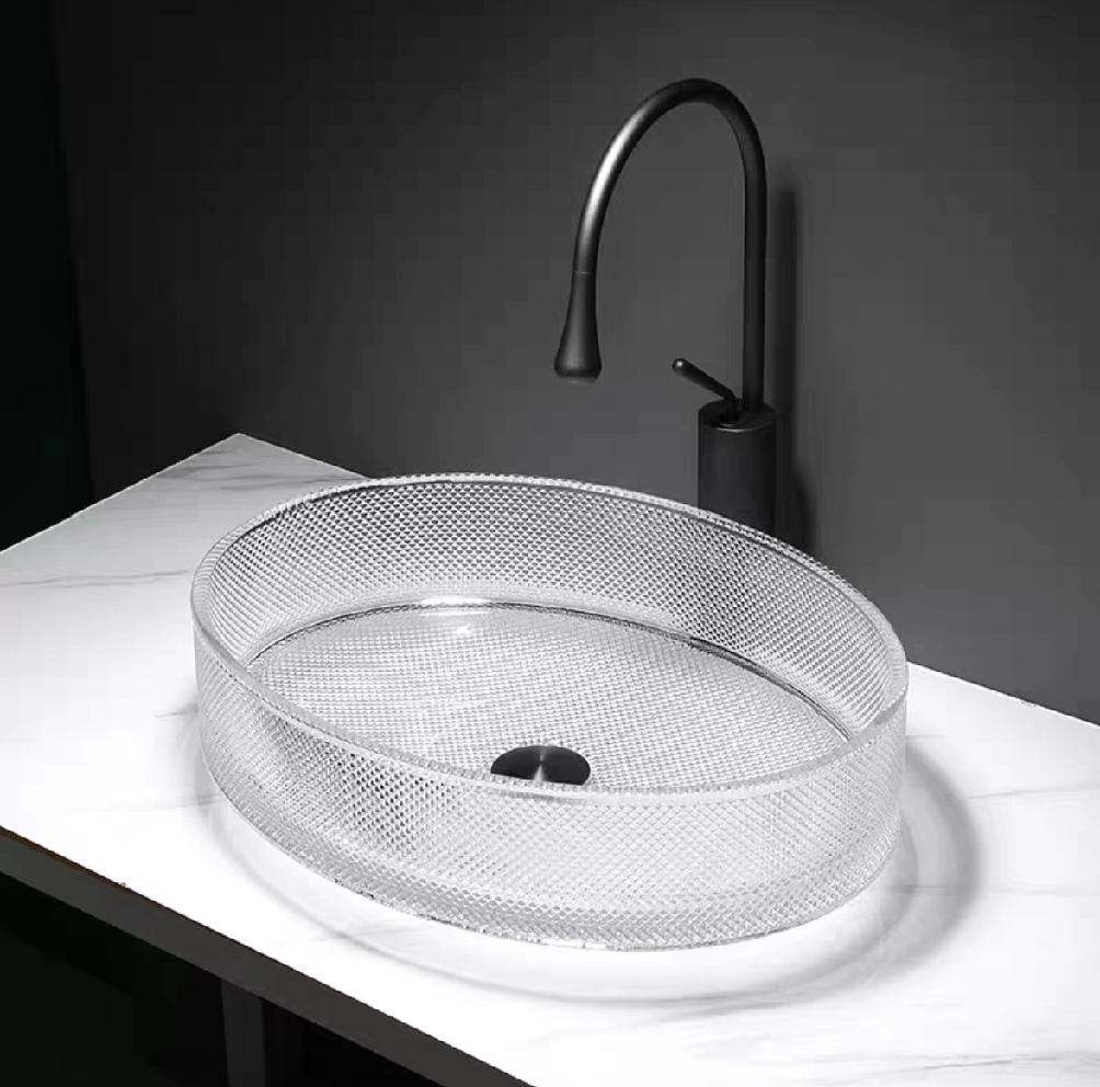分享一组网红台上盆,水晶玻璃一体成型烤制。适合风格“轻奢风” 什么是台上盆? 台上盆就是指直接摆放在台面上的洗手盆。台上盆底部离地高度一般是750mm~800mm,这样洗手时不需要过度弯腰,更适合有老人家使用的居住场所。 台上盆安装简便,由于直接摆放在台面上,所以不用担心与台面分离脱落。 台上盆缺点清洗台面时候不能直接把台面水拨到台盆中,不方便搞卫生。