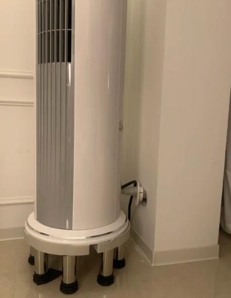 虽然现在柜机的样式多数都是圆柱形, 相比于以前的长方体样式要看, 但后面的这个排水口真的很难看啊!! 很难做到贴合。 还有排水孔的高度,你就贴地打孔, 因为轨迹的排水管真的很低, 师傅稍微不注意就可能打的高了。 到时候你再把柜机加高, 那可是真的丑了。