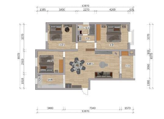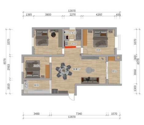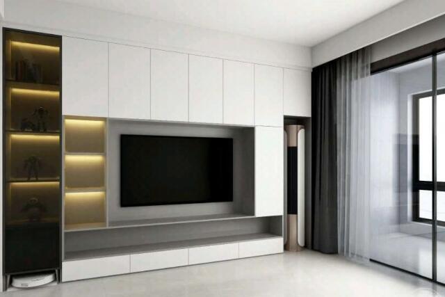 户型改造方案参考: 厕所干湿区分离,厕所门对着入户门,用砌墙的方式来遮挡。每个卧室一个衣橱,进门处一个鞋柜置物柜,阳台一个吊柜,收纳空间不够,所以客厅电视墙做成整面收纳空间电视墙
