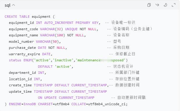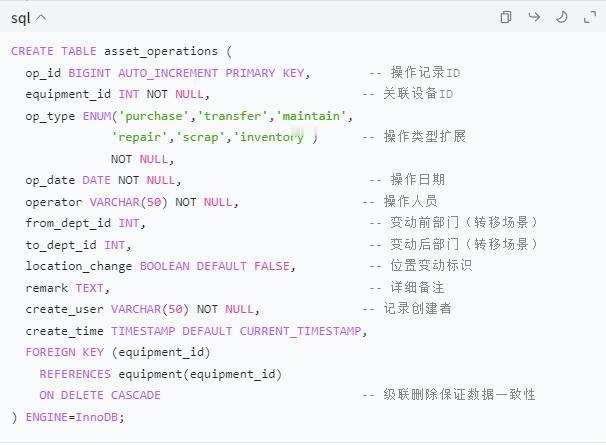 实用性爆表!MySQL设备资产查询库对比与实战教学 引言:设备管理的数字化转型刚需 在企业信息化管理体系中,设备资产作为核心生产要素,其管理效率直接影响运营成本与业务连续性。 当企业设备规模突破百台级,传统Excel表格管理模式便暴露出数据孤岛、查询低效、版本混乱等问题。 MySQL凭借其强大的关系型数据管理能力,成为构建设备资产管理系统的首选技术方案。 本文将从基础查询工具对比入手,结合实战案例解析,帮助读者掌握高效的设备资产查询技巧,实现从数据混乱到有序管理的跨越。 基础查询工具深度对比:选择适合的武器 INFORMATION_SCHEMA:数据库的元数据百科全书 作为MySQL内置的元数据信息库,INFORMATION_SCHEMA存储了数据库、表、列、索引等结构信息,堪称数据库的“DNA图谱”。 其核心优势在于提供标准化的元数据查询接口,支持通过SQL语句动态获取表结构信息。 适用场景: 开发阶段表结构设计验证 自动化脚本获取表结构信息 数据迁移前的结构比对 性能局限: 该库采用虚拟表实现,数据来源于存储引擎元数据,当数据库包含海量表时,复杂查询可能触发全库元数据扫描。 实测表明,在包含500+表的数据库中,单次全表结构查询耗时约25秒,需避免在高频业务场景中使用。 SHOW语句:简洁高效的快捷指令集 SHOW系列命令作为MySQL的“快捷键”,提供了更轻量化的元数据查询方式。其语法简洁直观,执行速度通常比INFORMATION_SCHEMA快30%50%。 功能边界: 虽然支持表结构、索引、状态等查询,但仅能返回基础信息,无法像INFORMATION_SCHEMA那样提供完整的元数据字段。 且不支持复杂条件过滤,例如无法直接查询“所有包含status字段的表”。 自定义查询:释放SQL的无限可能 当基础工具无法满足业务需求时,自定义SQL查询成为终极解决方案。通过灵活组合SELECT、JOIN、子查询等语法,可实现从简单字段查询到复杂业务逻辑的全覆盖。 技术门槛: 需要掌握SQL语法、索引优化、事务管理等知识,错误的查询设计可能导致性能瓶颈或数据不一致。建议通过EXPLAIN执行计划分析查询效率,避免全表扫描。 工具选择决策矩阵 实战表结构设计:构建规范化数据模型 核心实体表设计原则 设备主表(equipment)——设备档案的“数字身份证” 设计要点: 采用代理主键(equipment_id)+业务主键(equipment_code)双主键模式,兼顾技术唯一性与业务可读性 状态字段使用ENUM类型实现有限状态机,避免非法状态值 时间字段使用TIMESTAMP而非DATETIME,自动支持时区转换(需配置server_timezone) 资产操作记录表(asset_operations)——设备全生命周期日志 设计价值: 完整记录设备从采购到报废的所有关键操作,形成可追溯的审计日志 通过外键约束与级联操作,确保主从数据一致性 预留扩展字段(如from_dept_id/to_dept_id),支持未来业务场景扩展 维度表设计:数据标准化的基石 维度建模优势: 消除数据冗余(如部门名称仅存储一次) 支持复杂层级查询(如统计华东地区所有部门的设备数量) 便于后续BI分析与数据可视化 复杂查询场景实战:解锁高阶应用技巧 设备全生命周期轨迹查询 需求:查询指定设备(ID=1001)的所有操作记录,按时间倒序排列,显示操作类型、操作时间、操作人员及变动详情。 优化要点: 对equipment_id、op_date字段建立复合索引,提升查询效率 使用LEFTJOIN而非INNERJOIN,避免遗漏无部门变动的操作记录 3.通过DATE_FORMAT函数统一时间显示格式,增强可读性 保修期预警查询(含状态过滤) 需求:查询所有状态为“active”且保修到期日在30天内的设备,按保修剩余天数升序排列。 (二)索引优化策略 1.复合索引设计 适用场景:包含status、warranty_expire、department_id的组合查询,遵循“最左匹配”原则 2.覆盖索引优化 优势:通过索引直接获取所有查询字段,无需访问数据行 总结:从数据管理到价值创造 通过合理选择查询工具、设计规范化数据模型、实施高效索引策略,MySQL能够将繁琐的设备管理转化为系统化的数据操作。 企业不仅实现了设备资产的实时可视化查询,更通过数据关联分析挖掘出设备使用效率、维护成本等深层价值。 随着物联网(IoT)技术的普及,设备数据将与传感器数据、运维系统进一步融合,而扎实的SQL查询功底将成为驾驭这些数据的核心能力。