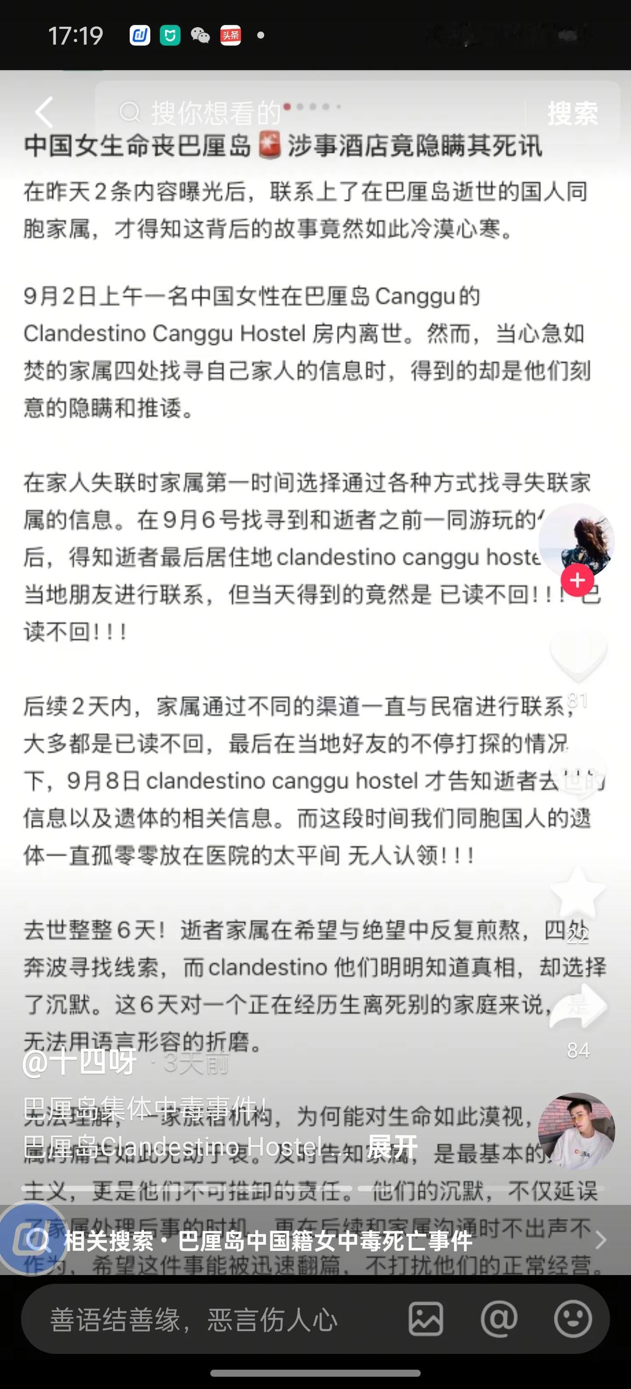 刚刚刷到有中国游客在巴厘岛酒店集体食物中毒,还有个中国女孩食物中毒遗体已经火化了[祈祷] 不禁让我想到2023年我和钱贝去巴厘岛旅行的时候,钱贝就是吃了图三左下角的汉堡,也是出现接连两天恶心呕吐,肠胃炎。 说真的我们环游世界9年了,很多脏乱差的东西都尝试过,但是能让钱贝这个铁胃倒下的,就这一次。我们还是在酒店沙滩的酒吧点的餐。 为什么说是这个汉堡,因为那一天内我和钱贝吃其它食物都一样,就这个汉堡她吃了我没吃。大家去东南亚,非洲那些地方旅行,饮食尤其喝水还是要注意下,喝水就买瓶装矿泉水。