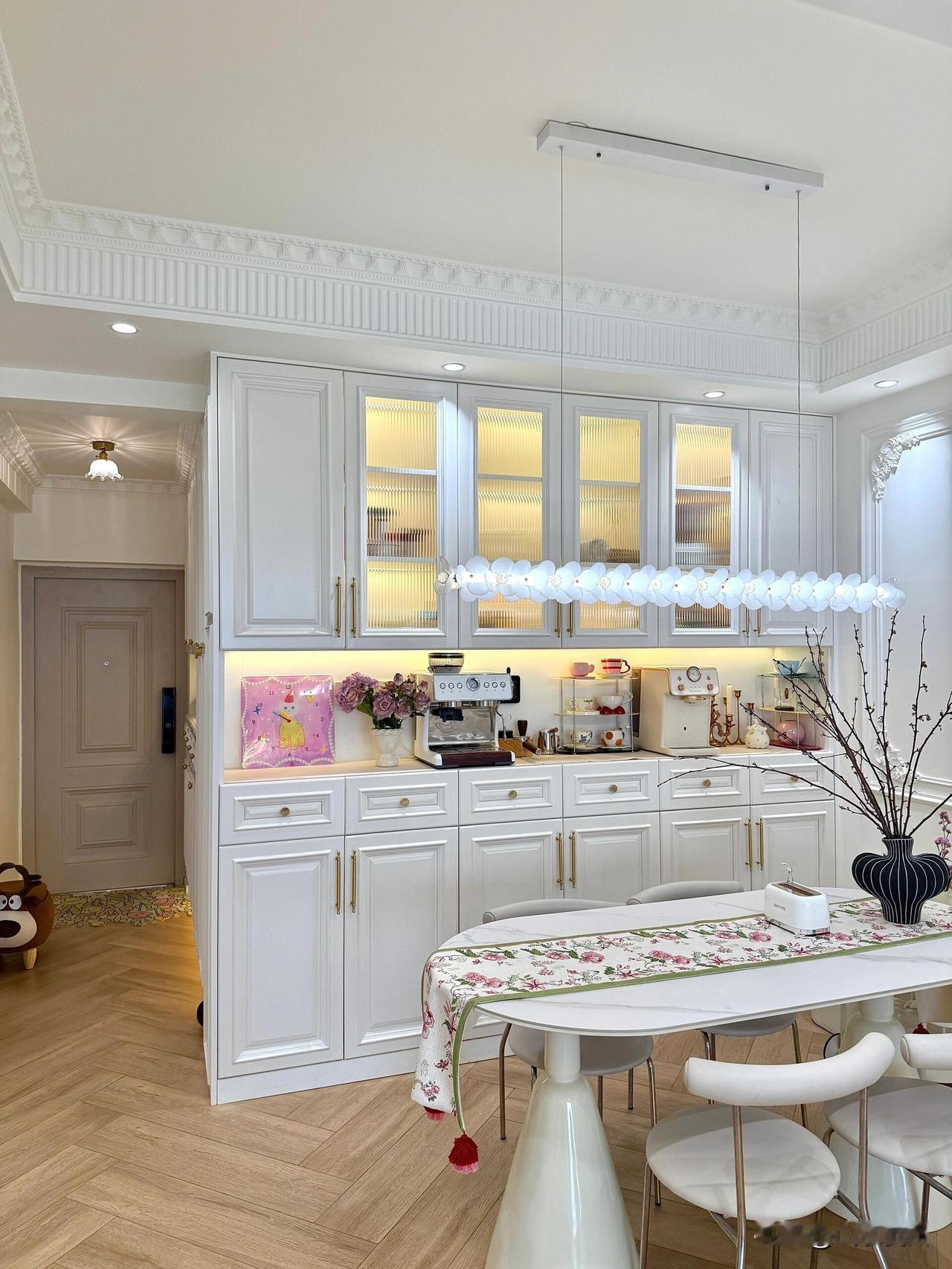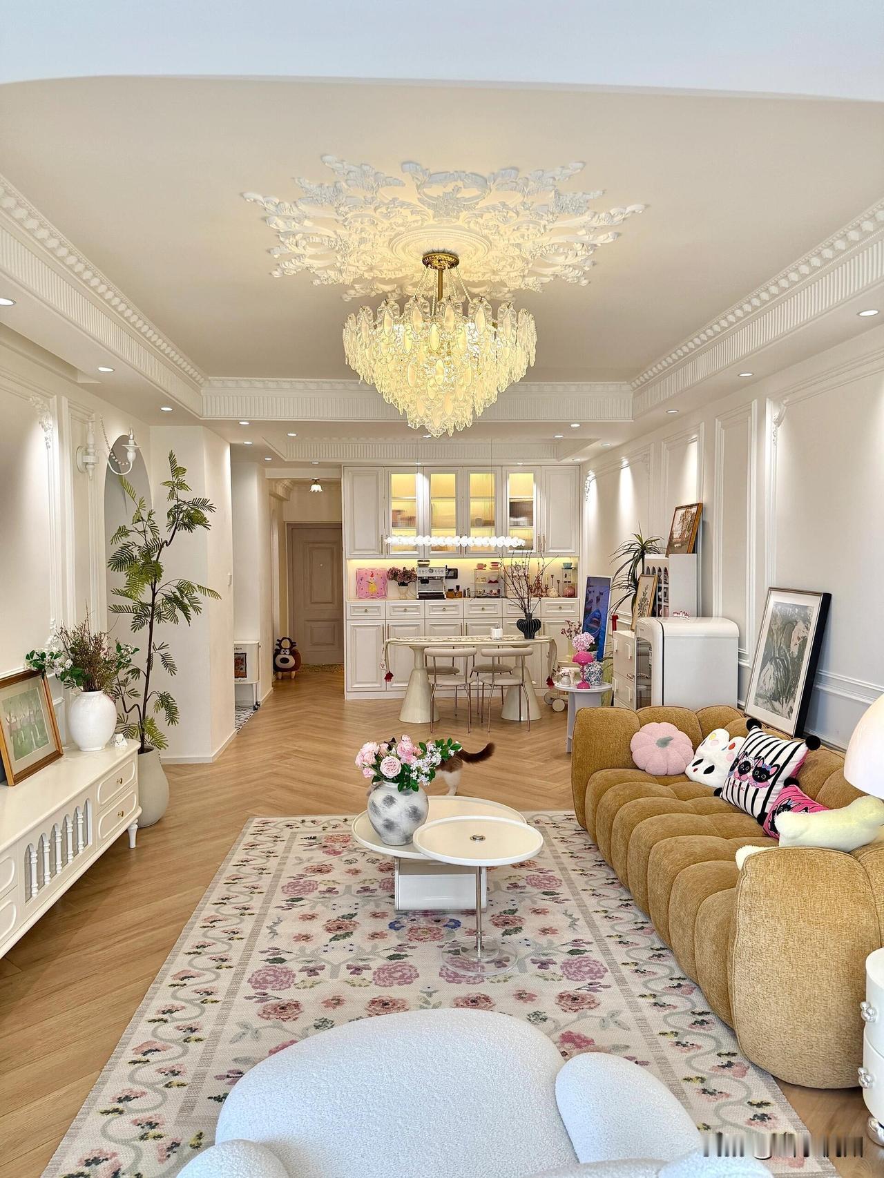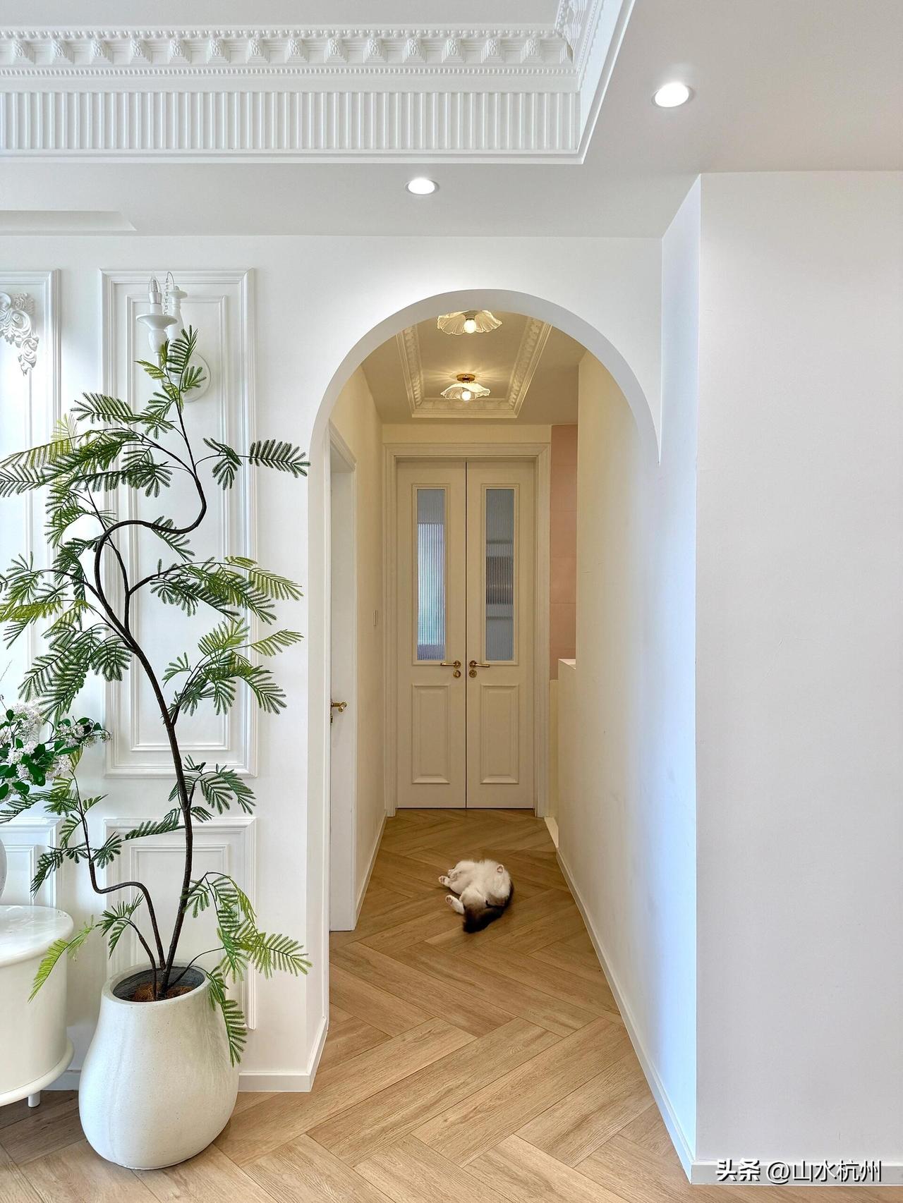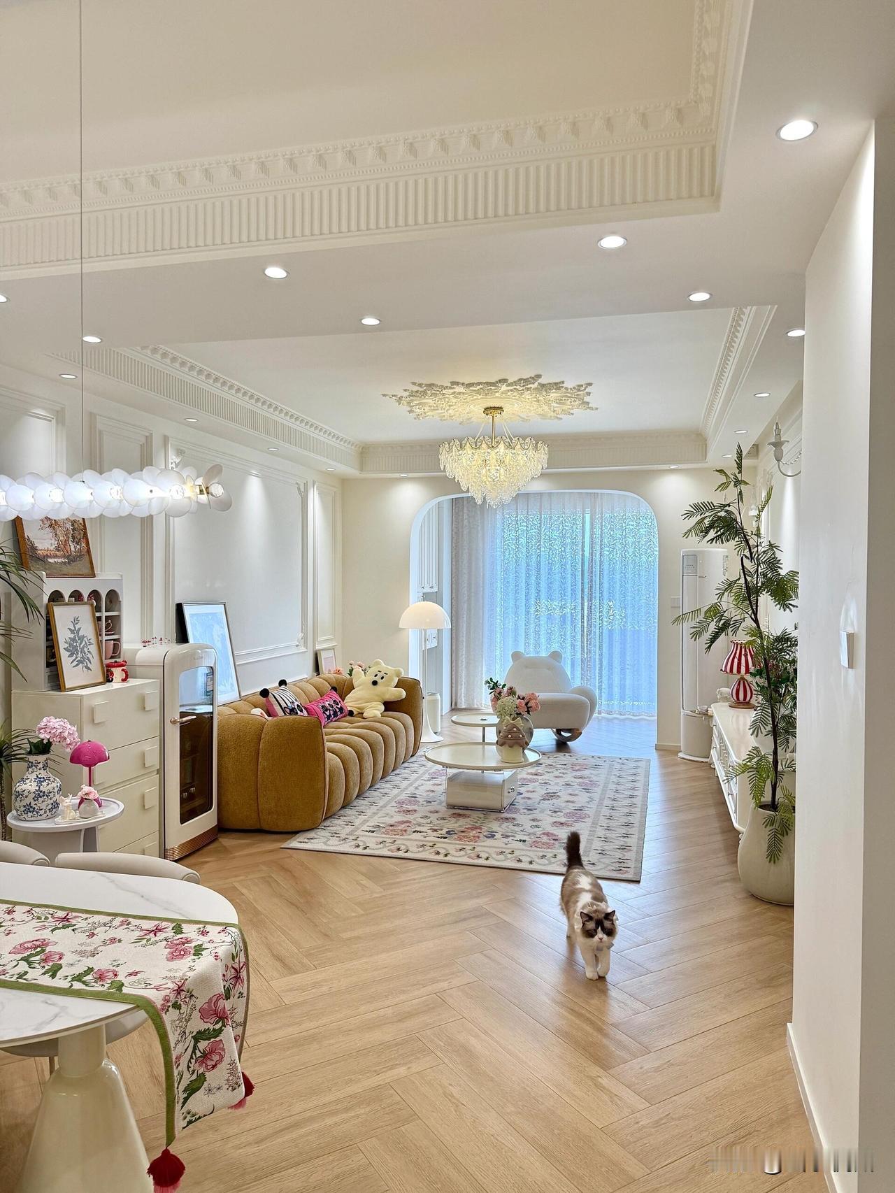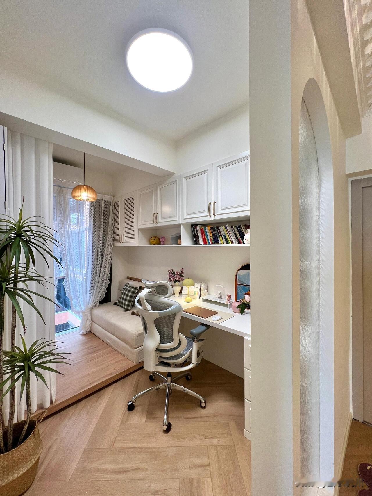 坐标广西跟对象恋爱7年 ,终于有了属于我们的小家,从相遇到在一起努力用了7年40w买的房,再花了13w装修成我们喜欢的样子,住了一段才知道我们这个小家有多香 建筑面积116平套内96平,三室两厅,跟对象共同努力7年,又花了13w自装成了奶油风,预算紧张全程自装没请设计师 全屋通铺20*90木纹砖,显大比木地板还省钱,通刷珍珠白,后期整体布置奶油色基本上不会基本翻车,开放式厨房,阳台做了半封闭,一半养花一半落地窗,不留客房,把一个小房间做了衣帽间 全屋墙面是暖色调珍珠白乳胶漆,住着很温暖又耐看,地面因为预算我家没选木地板,选的20*90木纹砖 入户花园赠送面积7平米,改造成了书房兼客房,阳台封了一半留一半,一半养花一半 落地窗,兼顾了休闲娱乐一体 硬装很简单,大白墙、木纹砖、半封阳台、开放式厨房、拱形门 软装也很简单,奶油色为主、搭配南瓜色沙发、暖白色地毯、奶油色茶几、法式轻奢电视柜、简约餐桌,虽然房子不大也不豪华,但也知足了
