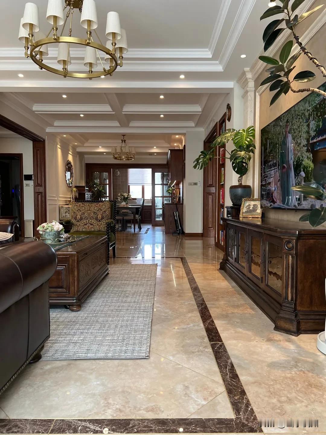 今天看到退休后大爷的房子,那叫一个高级,这么漂亮的家还是第一次见 客厅:天花板上有一个复古风格的吊灯,配有白色的灯罩。墙壁是淡黄色的,与深色的木质地板形成对比。客厅里摆放了两个深棕色的皮沙发,看起来很舒适。墙上挂着一个圆形的挂钟,设计简约而经典。 房间的设计结合了传统和现代元素,墙上的装饰品和家具的选择都显示出大爷对细节的关注和品味。 不得不说大爷家的设计既舒适又具有品味的豪华室内空间,每一个细节都经过精心设计。