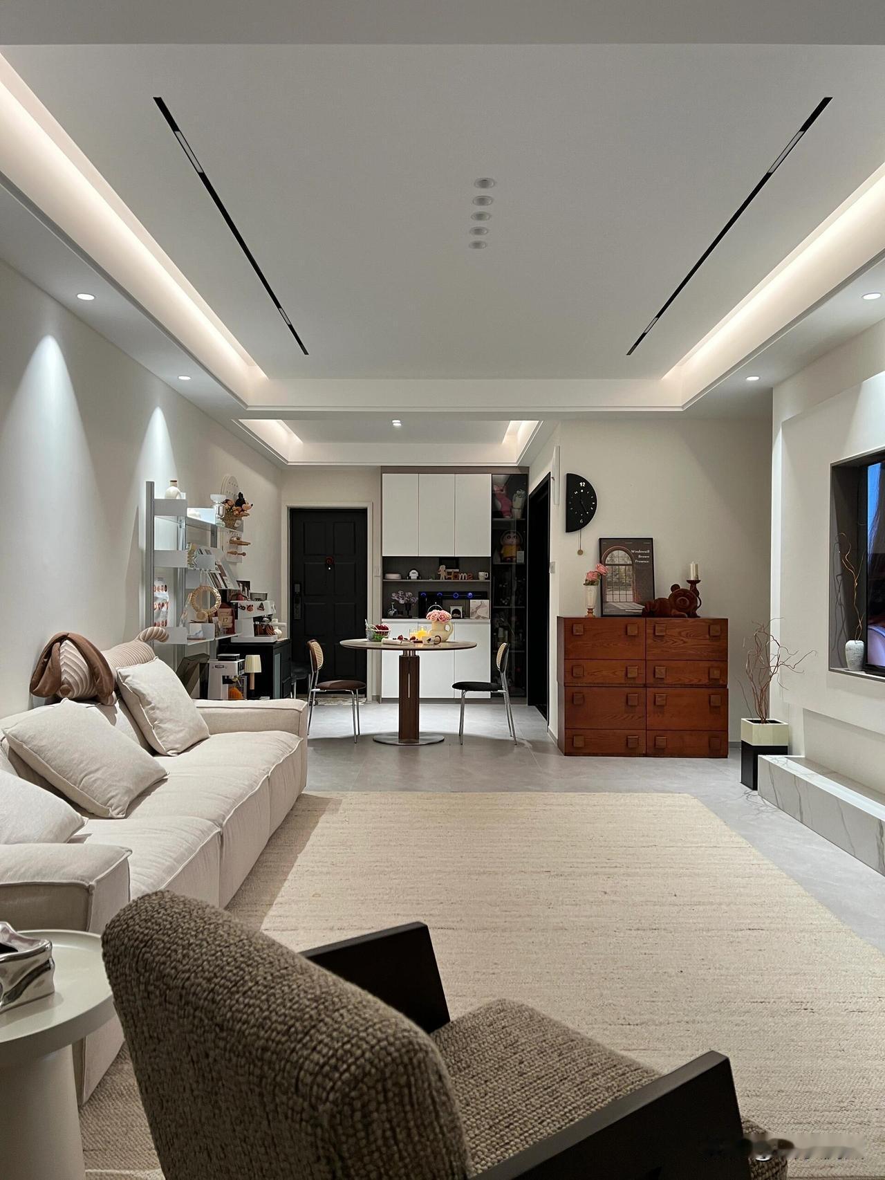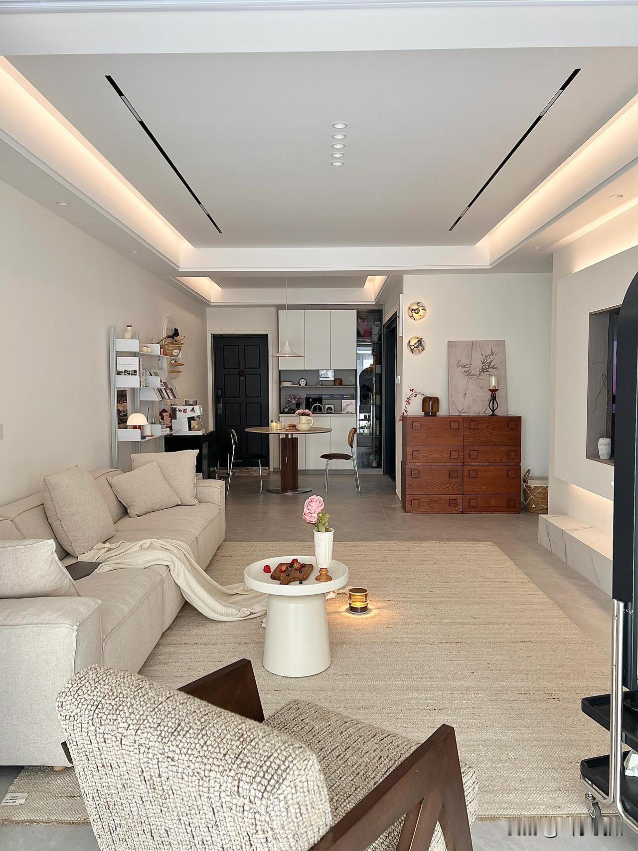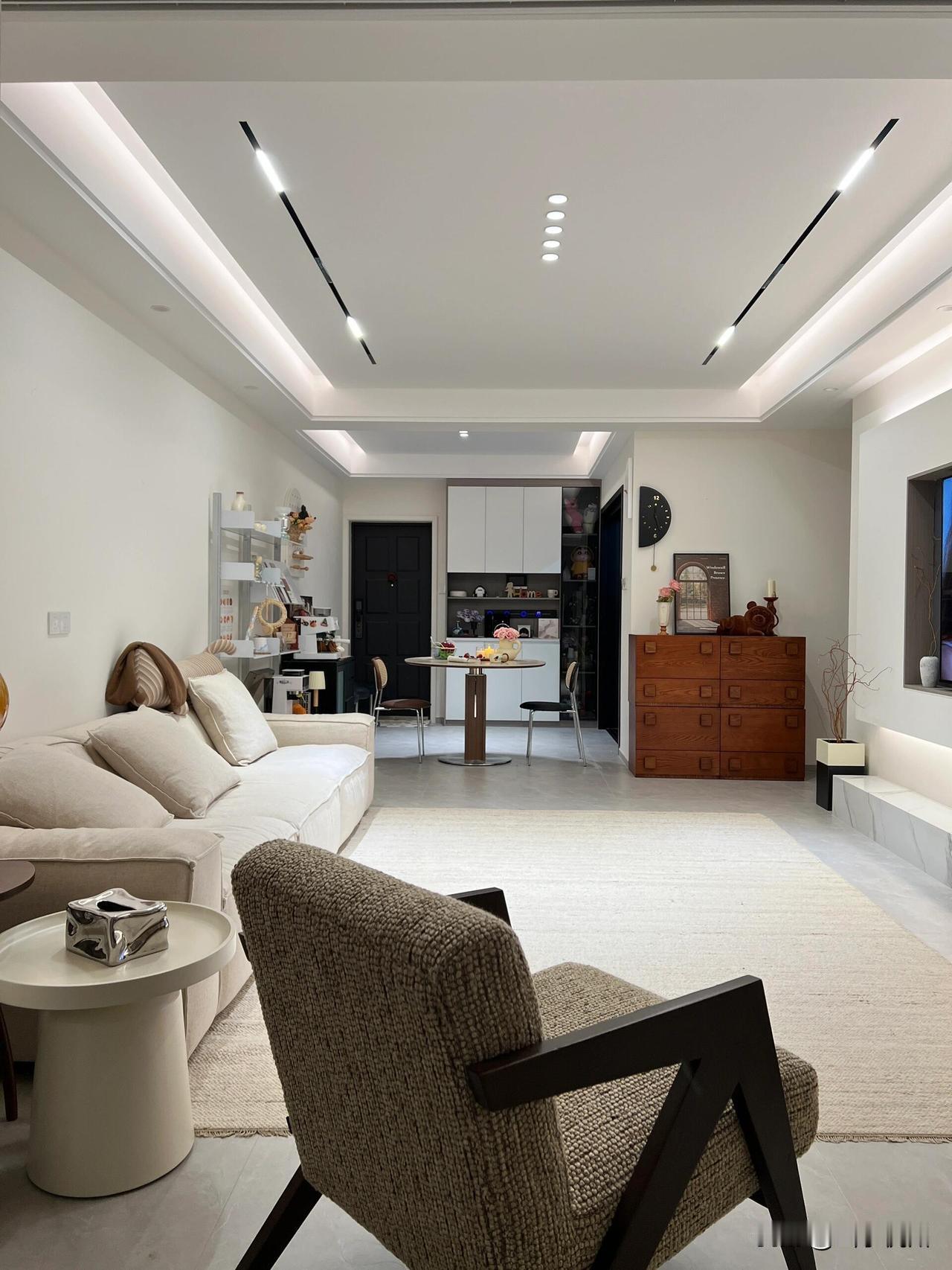 今天分享的是来自安徽的美女,她家建面145平,套内130平,四室两厅两卫,客餐厅一体,吊顶+无主灯,吊顶是做得简单的悬浮顶,没有复杂的造型这样更清爽显大,整体光线柔和不刺眼,一打开灯,那种光影效果简直绝了 本着轻硬装重软装的理念,所以硬装非常简单,客餐厅大面积留白,墙面通刷乳胶漆,选用瓷砖通铺,吊顶选择了悬浮吊顶+无主灯设计,视觉上更显大 她说: 个人觉得色温和搭配是无主灯的关键,家里浅色比较多,所以选择了一些棕色的软装,颜值质感提升很明显!再加上精致的小摆件,氛国的灯具,住一段时间换搭配都可以灵活改变风格,把房子搭配出可持续带来新的体验居住环境,温馨氛围大大提高了居家舒适感 对于这样的装修风格,大家喜欢吗?