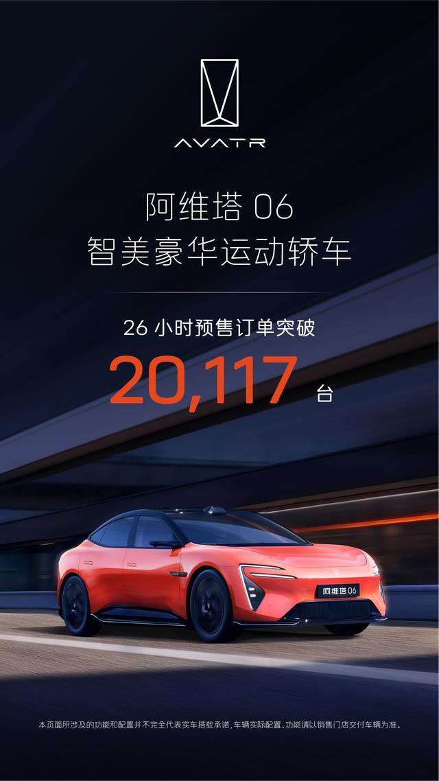 阿维塔这次牛了?阿维塔06 预售26小时,订单20117台!【来自懂车帝车