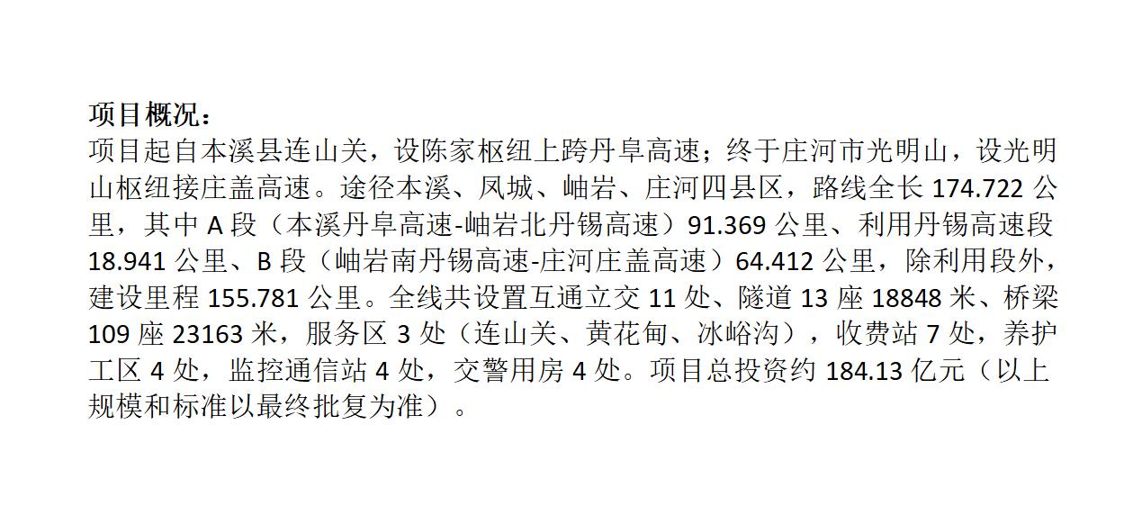 184亿:本溪至庄河高速公路中标~