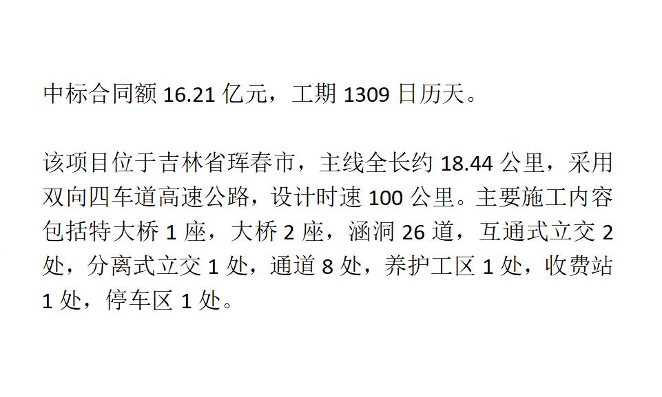 中交路桥北方公司中标G12珲春至乌兰浩特高速公路防川至珲春段项目控制性工程