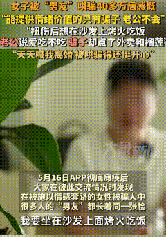 “真是被PUA了!”一中年女子被骗子男友骗了将近四十多万,可她却觉得只有骗子才能给自己提供情绪价值,自己也心甘情愿被他骗,不是我说,世界上没你爱的人了吗? 其实女子如果没有丈夫还好说,遇见一个自己心动的男友深陷进去也属于正常的,可问题是她有丈夫,两人相伴几十年了,或许是在一起时间太长了,女子厌倦了,于是便寻思在网上寻找慰藉。 就这样,很快的她找到了一个“男友”,俩人在一起后,她给这个男友前前后后可谓是转了将近有40多万,先不说有没有得到回报,最主要的是她这个行为是自愿的,怪不得旁人。 甚至女子每次提起这个骗子男友时满脸都是幸福的说,他们经常打视频,他也给自己送很多礼物,鲜花口红,喊她离婚,而有一次自己脚扭伤了,想让丈夫把饭端过来,可丈夫却说爱吃不吃,反倒骗子男友给自己点了外卖和榴莲。 怪不得她会深陷其中呢,俩人一对比简直一个天上一个地下!