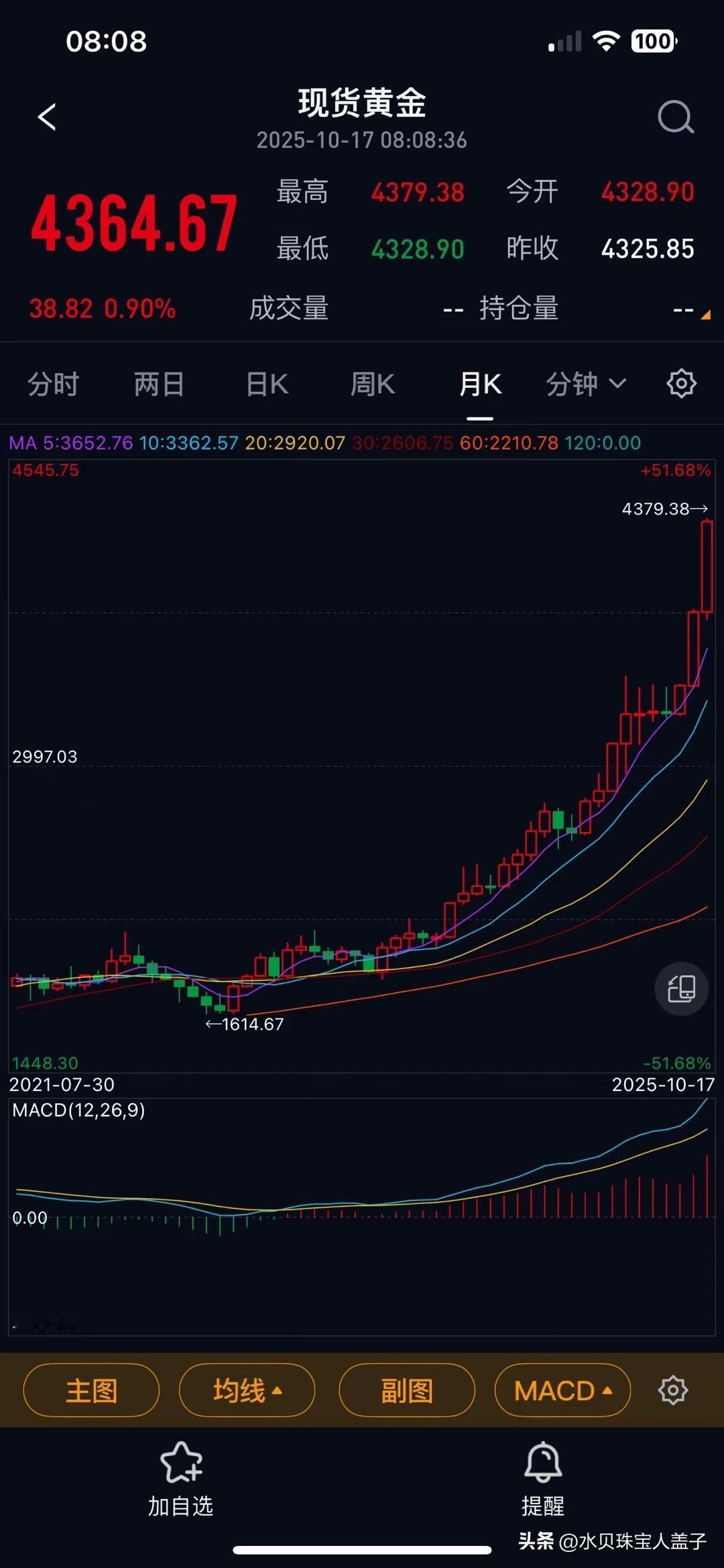 [恐惧]一觉醒来,水贝黄金金价破千,国际金价最高达到4379美元/盎司~ 今年的金价真是一次次创新高,一次次见证历史…… 那么,面对如此暴涨的黄金,你怎么想的呢?金价狂飙你会不会投资黄金 黄金行情价格 金价 实时金价