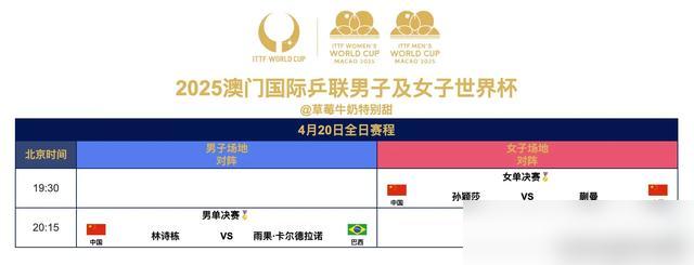 国乒今夜冲双冠!莎莎VS蒯曼内战一触即发,林诗栋能否扛住压力复仇雨果?就在今晚19:30,CCTV5全程直播世界杯巅峰对决!孙颖莎和蒯曼提前包揽女单冠亚军,18岁小将林诗栋扛起男单独苗大旗,直面巴西名将雨果的疯狂冲击! 孙颖莎前三板堪称教科书,蒯曼连克王曼昱、伊藤美诚的逆风翻盘更让人热血沸腾!这场新老对决,我赌莎莎用经验稳扎稳打,更期待蒯曼再爆冷门!男单生死战,林诗栋的反手暴击遇上雨果的中远台重炮,胜负就在毫厘之间——小将必须稳住发球,把压力转化成杀气! 看着战袍绣五星的健儿们,谁能不心潮澎湃?从刘国梁到马龙,国乒精神代代传承!今晚林诗栋每得一分,都是中国乒乓的薪火闪耀! 此刻评论区集结!一人一句"中国队必胜",让远在澳门的健儿听见14亿人的助威声浪!