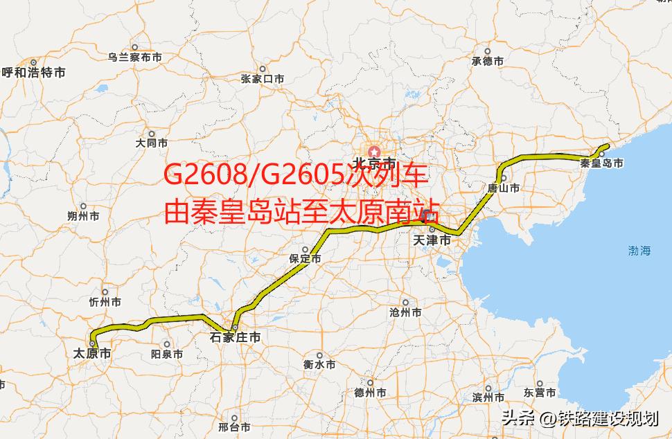 G2608/G2605次列车由秦皇岛站至太原南站 始发车站:秦皇岛站 终点车站:太原南站 发车时间:14:06 到站时间:19:20 运行时间:5小时14分 全程里程:约790公里 列车平均速度:146km/h 列车型号:和谐号(CRH380A型) 担当路局:太原局 途经线路:津秦高铁、津保客专、京广高铁、石太客专等。 本次列车以动态车次编号和高效跨省联通为核心特点,通过精准的时刻控制,服务沿线城市群。