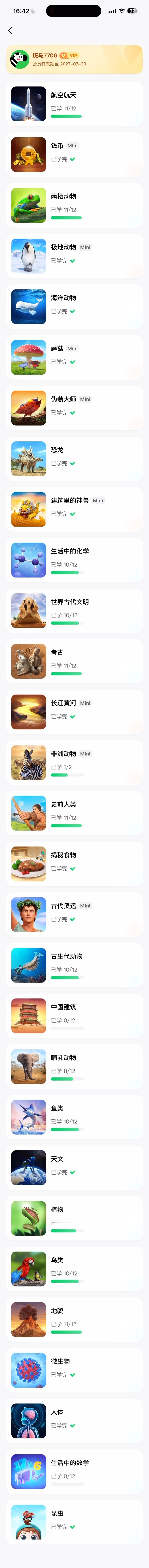 不知不觉,俩娃在斑马百科上已经学了这么多课程了,基本都是在车里的碎片时间看的,上下学接送,周末出去玩的路上。好多课程都是反复看好几遍,都快背下来了。因为百科看得多,买的很多课外书都觉得没意思了,“这些斑马百科上都讲过,比书里还详细”。强烈推荐。