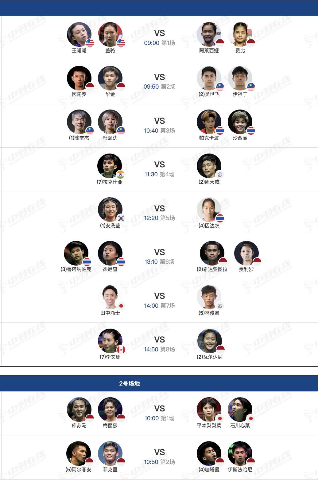 11月22日各单项半决赛赛程,早上9点开赛: