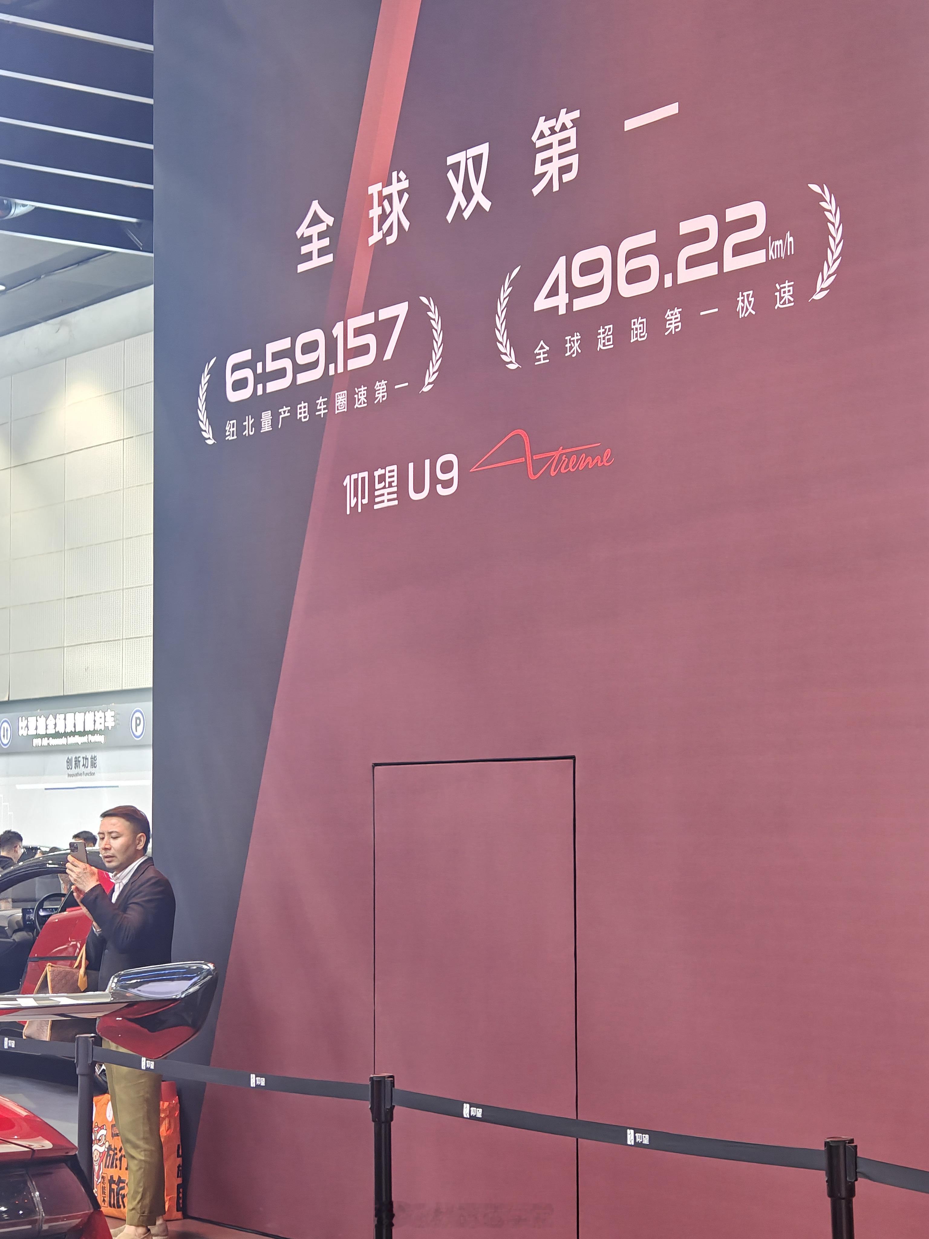 中国速度,全球仰望,仰望U9 Xtreme 纽北量产电车圈速第一,全球超跑第一极速496.22km/h,这个是真的酷啊,仰望展台最受瞩目的车型