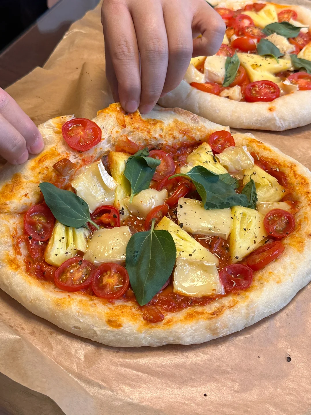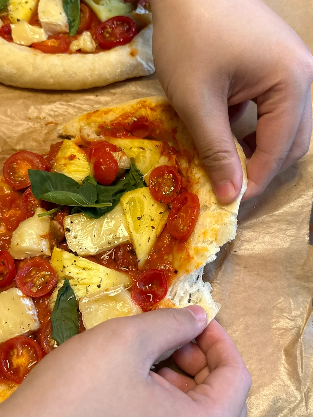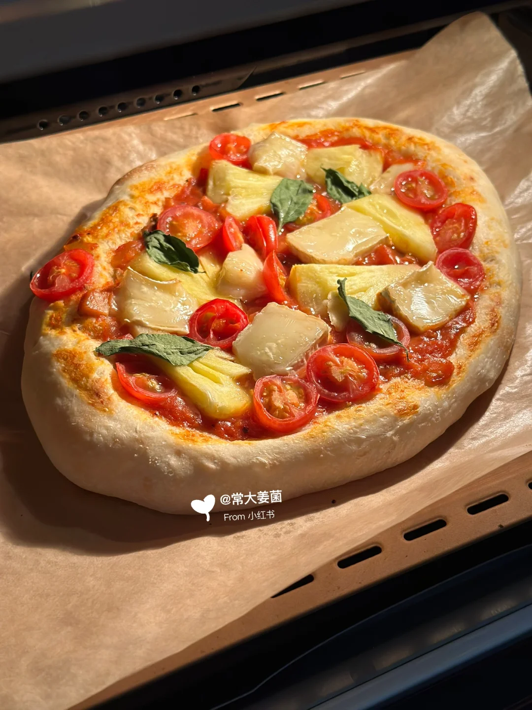 最快乐的每周pizza日! 今天是夏威夷口味!加了菠萝🍍布里奶酪🧀 味道绝绝子!!! 超级夏日风情(我真的很爱菠萝加热后的口味🥰🥰