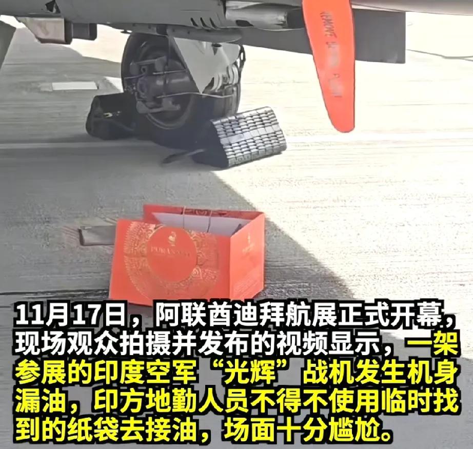 就在刚刚,印度战机“光辉”在迪拜航展上表演飞行时坠毁,而在几天前,就有外媒报道这台战机漏油严重! 四天前,有参观迪拜航展的游客表示,众多展览战机中,唯有印度“光辉”别出一格,因为该战机漏油无人修,其工作人员只用一个纸袋子放底下接油。 如此出洋相的行为,放在印度身上竟也不觉奇怪,谁曾想,今天下午该战机表演时就出了事故,最终连着飞行员一同就坠毁,若是早早有人重视,兴许意外也不会发生!
