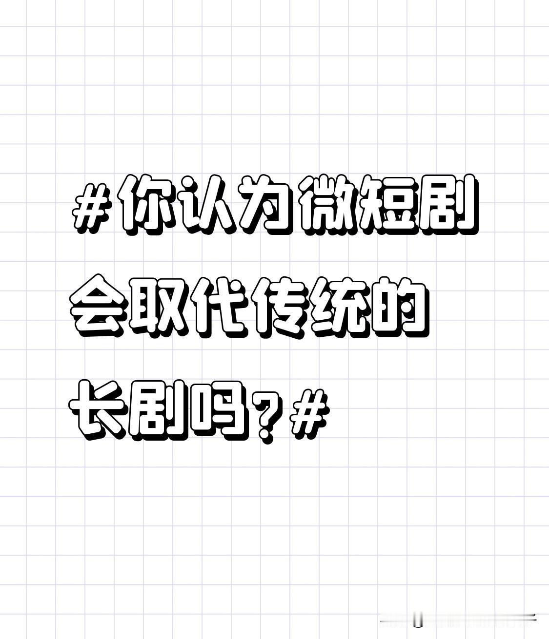 你认为微短剧会取代传统的长剧吗? 微短剧会取代传统长剧吗?我看难。 这几年微短剧确实火,像《大妈的世界》《拜托了!别追我》在短视频平台热度很高。它主打“短平快”,一集就几分钟到十几分钟,等公交、坐地铁时花几分钟就能看一集,剧情紧凑不拖沓,很对当下年轻人胃口。而且制作成本低、周期短,小团队甚至个人都能参与。 但传统长剧也有不可替代的魅力。全国人大代表赵冬苓说,观众看微短剧是情绪宣泄,可总有观众需要长剧带来更深的感情抚慰和释放。像《甄嬛传》《琅琊榜》等经典长剧,剧情丰富、人物立体,值得反复品味。所以,二者会长期共存。