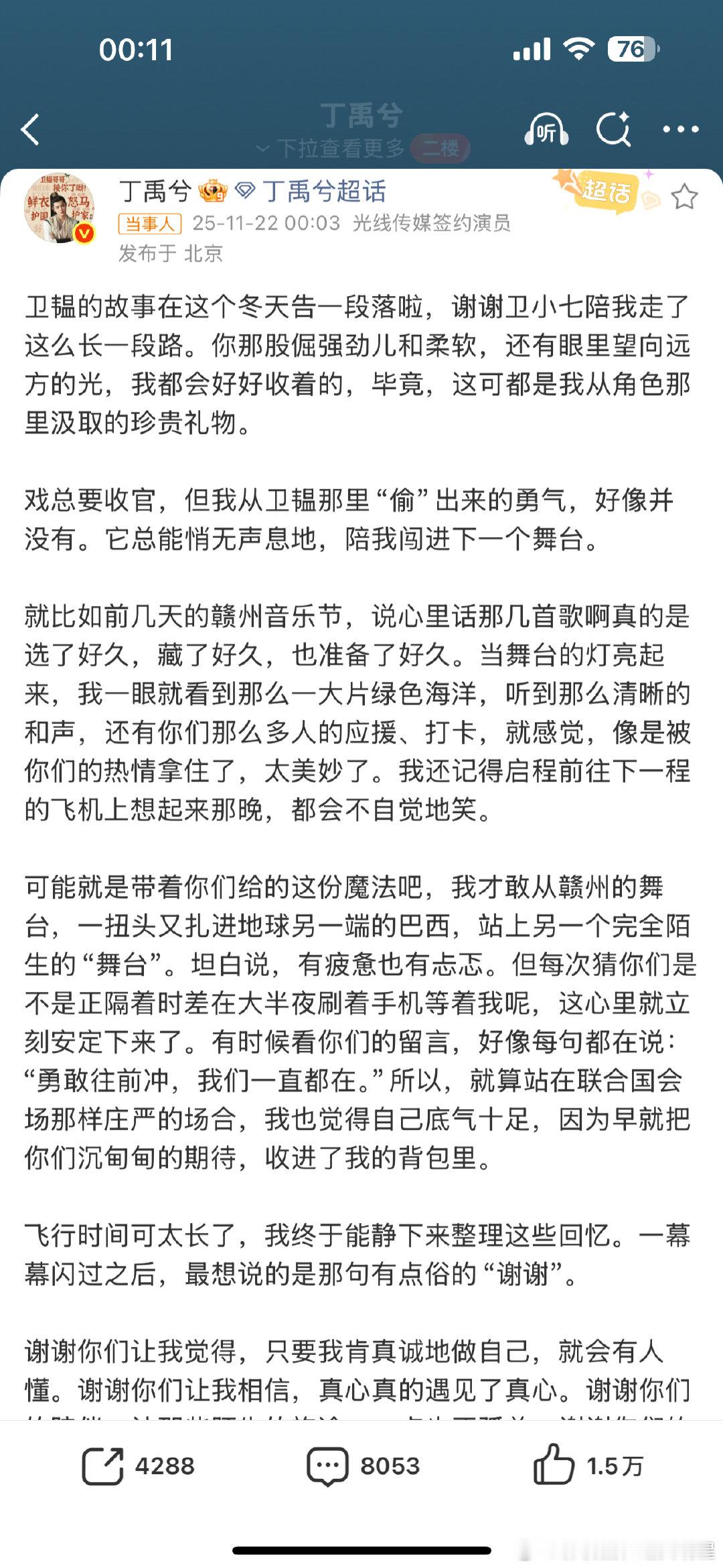 丁禹兮发文告别山河枕