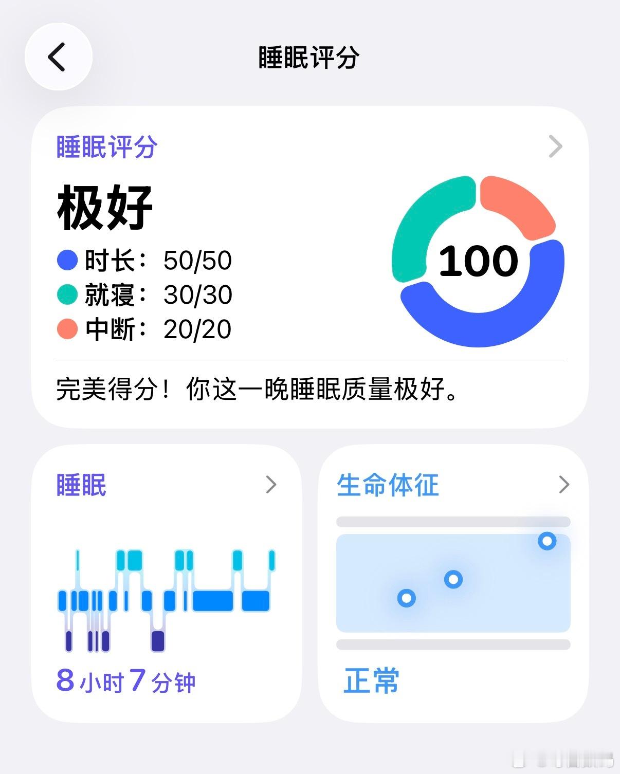 恭喜我自己,昨天睡眠评分100分