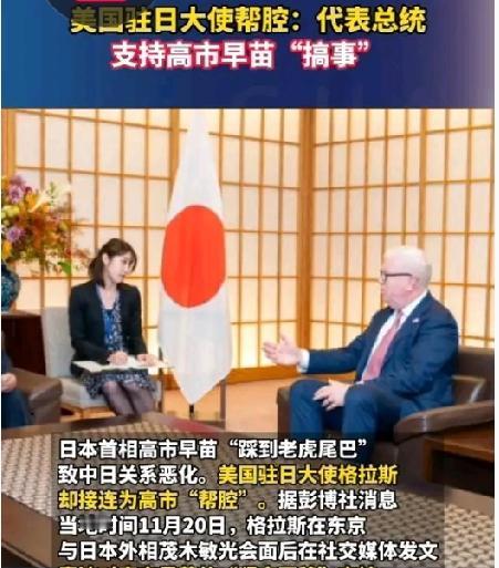 美驻日大使格拉斯最近突然高调!直接打着“代表总统”的旗号, 公开支持日相高市早苗涉台言论! 这一系列动作背后到底有啥门道?说白了,就是想让日本当那个“出头鸟”。 最近这段时间,这位美国驻日大使格拉斯突然就这么高调,直接打着“代表总统”的旗号公开支持日本首相高市早苗关于中国台湾地区的一些言论。这明显就是想怂恿日本继续去招惹是非,这样美国就能趁机捞好处。有意思的是,美国国务院也赶紧出来表态,明确表示美日同盟连中国台湾地区所属的钓鱼岛都算在内,明摆着就是在给日本壮胆。 美国这招“借日本当枪使”的套路玩得真够溜的!既能让日本在前面当靶子,还能顺便多卖点军火赚钱。听说最近美国刚批准向日本出售一批精确制导炸弹,日本那边也说要把“爱国者”导弹卖给美国,这么一来一回,军火买卖就这么越做越红火了。 不过美国也留了一手,就只让大使出来说话,总统自己却没出面说一句话。这就是典型的做法——说最硬气的话,给自己留最大的余地。看样子,美国就是想让日本当那个出头的“冤大头”,自己在后面偷偷数钱。 大家觉得美国这招“让日本当枪使”的计划能成吗?要是日本真敢一直当这个“先锋兵”,后续可能还有更多好戏看呢!