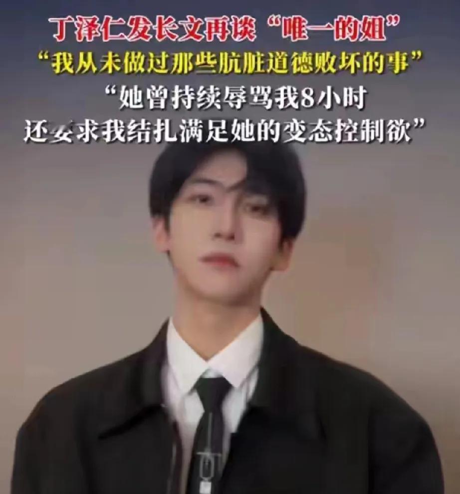 炸裂大瓜!26岁男星丁泽仁自曝被40岁富婆郝女士“变态控制”6年,甚至被逼做结扎手术! 当年19岁的他刚出道,在飞机上被郝女士以粉丝身份接近,从此陷入噩梦。郝女士疯狂砸钱,从打榜到捐建希望小学,助力他事业上升,却也因他恋爱威胁曝光。 之后控制欲爆棚,电话轰炸、辱骂,甚至送结扎手术单。丁泽仁不堪受辱自杀未遂。可网友不买账,直言他拿了300万还装无辜,劣迹斑斑的他,早有出轨等黑历史。这场闹剧,真是一个巴掌拍不响,两人都难辞其咎! 丁泽仁演唱会