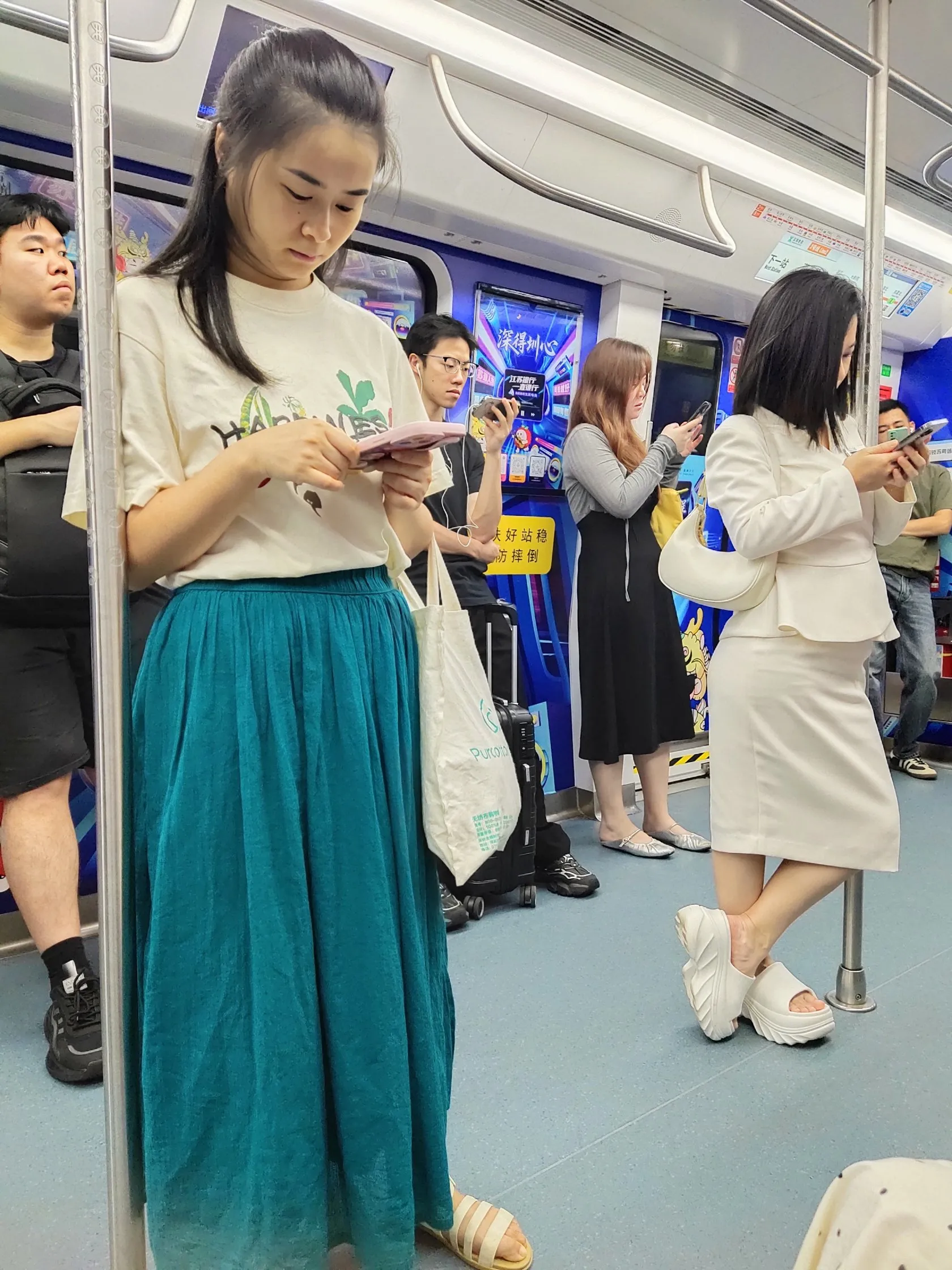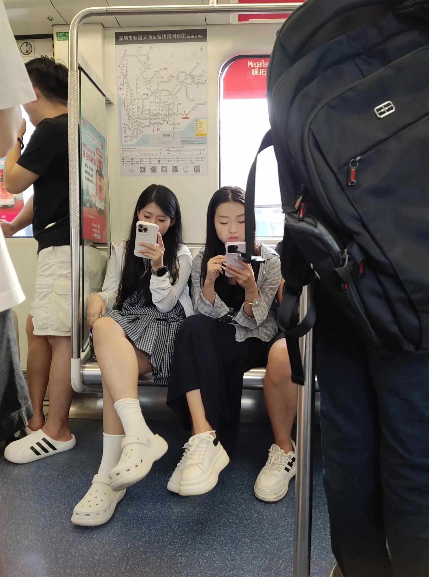天津地铁美女如云。第一次来天津姑娘原来都是大长腿,大高个。