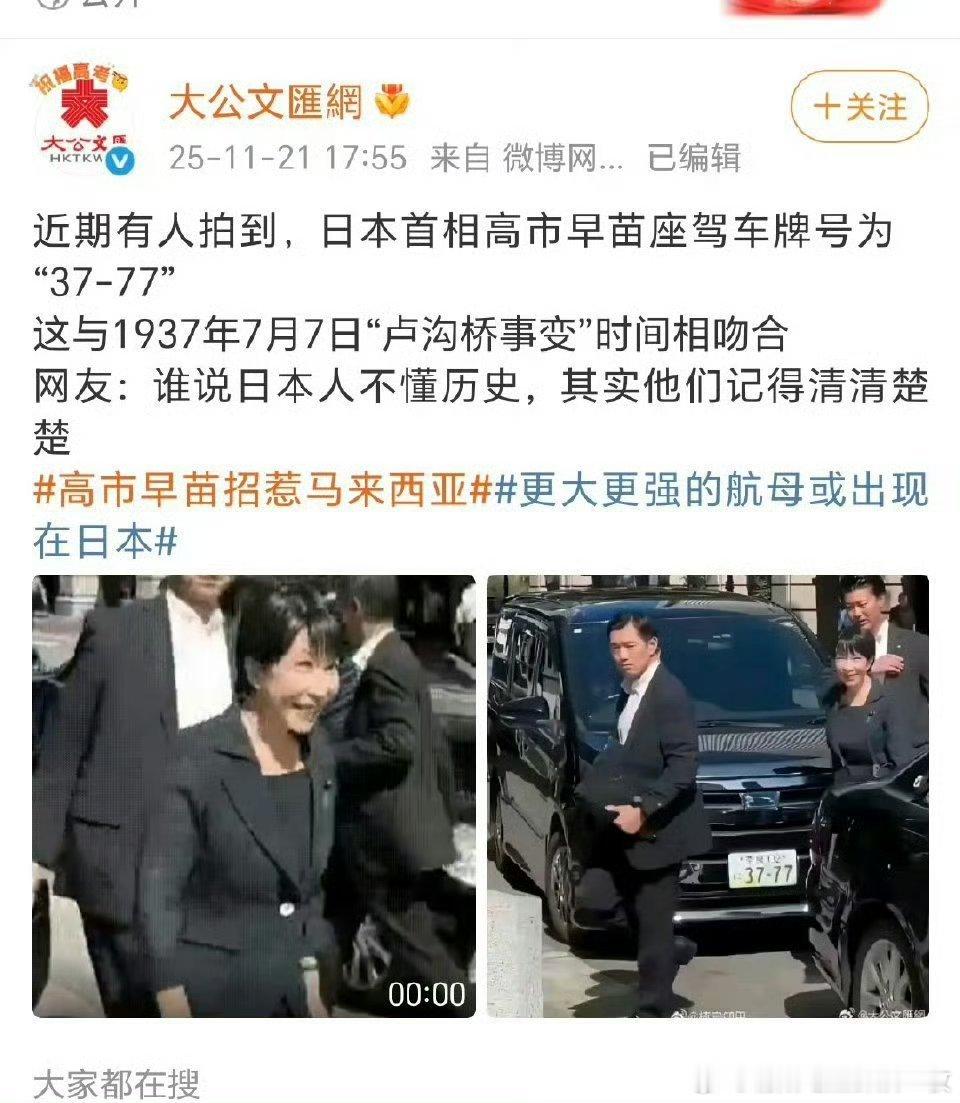 惹众怒!高市早苗竟向二战日军献花。她的车牌号是37-77,中国人永远忘不了的日子,真的是“搞事毒苗”。