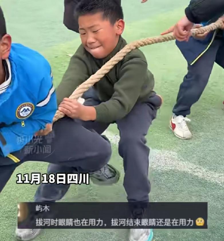 “方法不对,努力白费!”四川,一所小学举办拔河比赛,一名小男孩用了吃奶的力气,却还是输了比赛,回到班级后躺在地上大哭,不过网友看到他拔河时的动作,却表示输的很正常。   四川凉山一所小学的拔河赛场上,二年级男孩的表现把这话照得明明白白。   操场边加油声震得人耳朵发颤,男孩攥着麻绳的手关节泛白,整个人几乎挂在绳子上。   他把绳子扛在肩膀,上半身绷得笔直,脸皱成一团,眉毛拧成疙瘩,连鼻尖都在使劲,校服领口被拽得歪到一边。   队友们都弓着腰往后倾,脚蹬着地面借力,只有他凭着一股蛮劲硬拉,绳子在他肩上磨出一道印子也没察觉。   哨声落,对方队员欢呼着倒在地上,他们班的绳子被拽过中线,男孩愣了两秒,松开手跟着队伍往教室走,刚跨过门槛就“咚”地躺倒在地,哭声一下子炸开来。   眼泪顺着脸颊往耳朵里流,胸口一抽一抽的,校服下摆都被蹭皱了,班里大半同学都红着眼眶,有女生抹着鼻子抽噎,几个男生攥着拳头不说话,整个教室只剩此起彼伏的抽泣声。   班主任把视频发上网,网友一看比赛片段全懂了,有人说这孩子太实在,拔河哪能把绳扛肩上?   正确姿势得脚前后分开,身体后倾,绳子贴在胸前,靠腰腹力气带动全身,他这姿势根本使不上劲,跟“轮胎没抓地力的汽车”似的。   还有人补刀,团队比赛讲究齐发力,他一个人节奏不对,整队力气都被搅乱了,输得不冤。   没人敢告诉男孩输的真正原因,他不是输在不努力,是没人教过他怎么用力,小孩的拼劲最纯粹,认定要为班级争光,就掏心掏肺往前冲,可方向偏了,再使劲也白搭。   这跟大人写方案、做项目一个理,闷头干不看方法,累到虚脱也难有起色。   第二天学校评团队总分,这班拿了第二,班主任特意派哭得最凶的他去领奖,男孩捏着奖状,眼泪还挂在睫毛上,嘴角却悄悄往上挑。   其实输赢早不重要了,赛场边他攥绳的狠劲,教室里坦荡的眼泪,比奖状更金贵,技巧能教,力气能练,可那股为集体拼到底的热乎劲儿,是天生的宝贝。