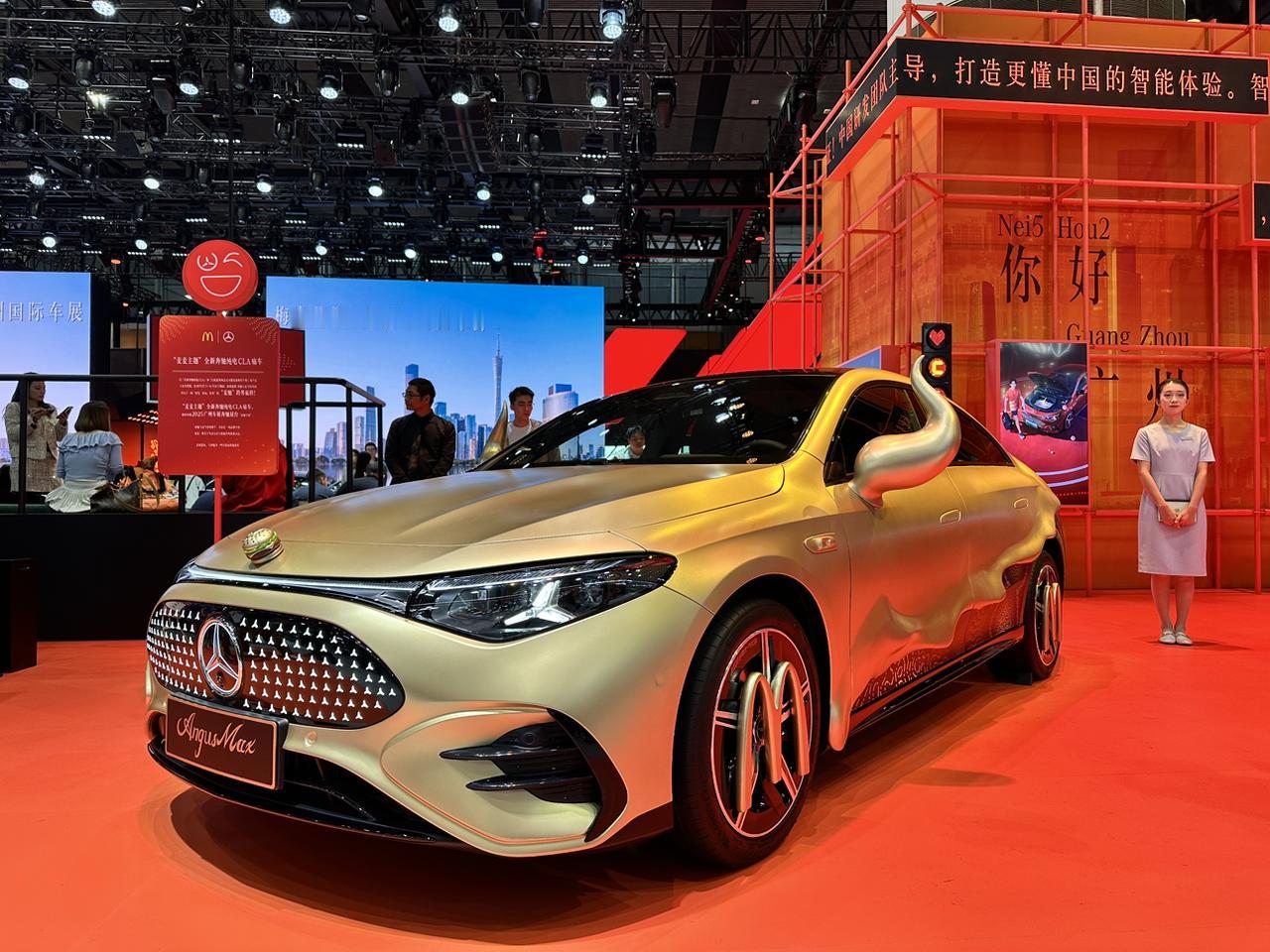 今年广州车展奔驰展台一改往届惯例,展台增加了一些动漫元素,这两辆经过创意改装的汽车,整体风格偏向于万圣节主题,也给车展带来了些另类乐趣,是打卡拍照的不错选择。【来自懂车帝车友圈】