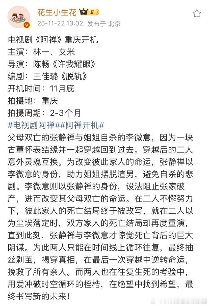 林一、艾米合作《阿禅》,将于11月底在重庆开机。
