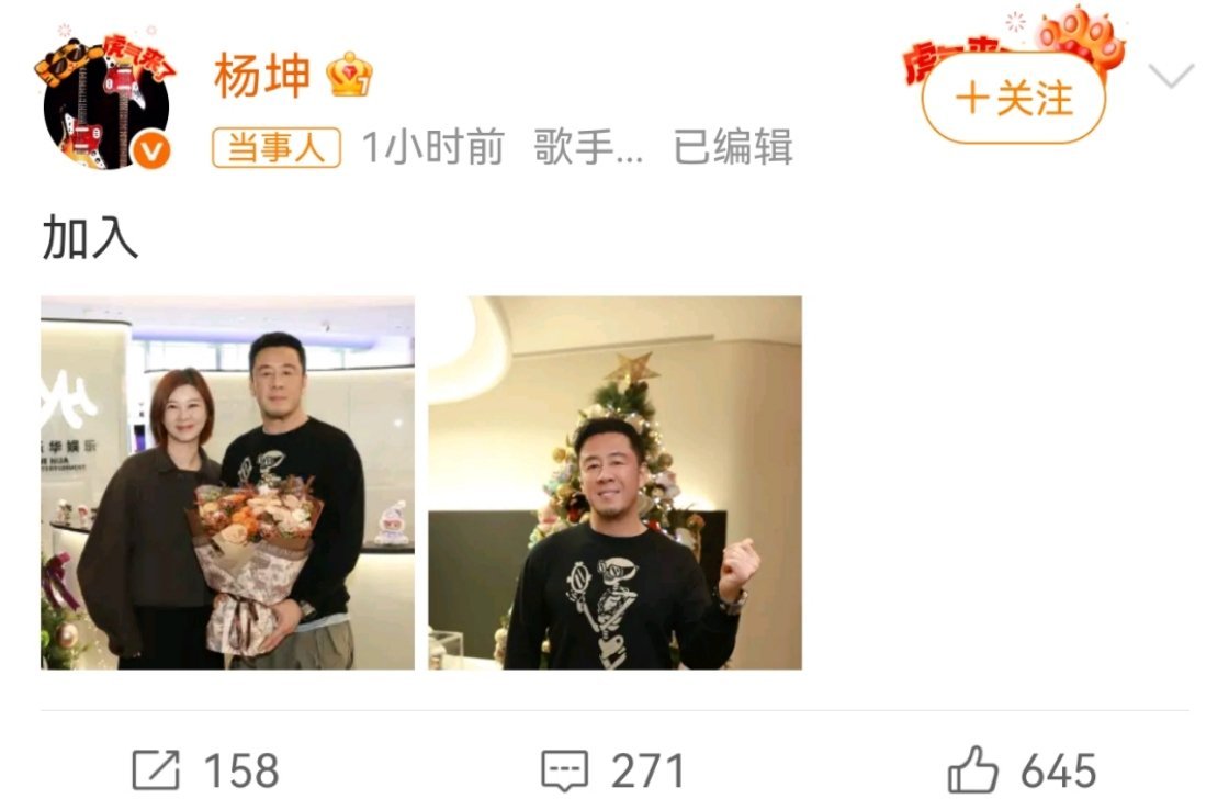 好消息来了!歌手杨坤正式官宣签约乐华娱乐,双方还晒出了合照。祝福新阶段一切顺利,