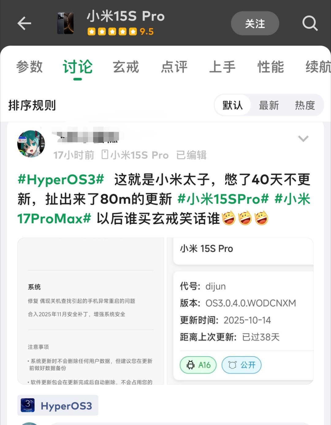 小米15S Pro用户们现在怎么样了?我看酷安不少人在吐槽系统不更新、Bug不修复。