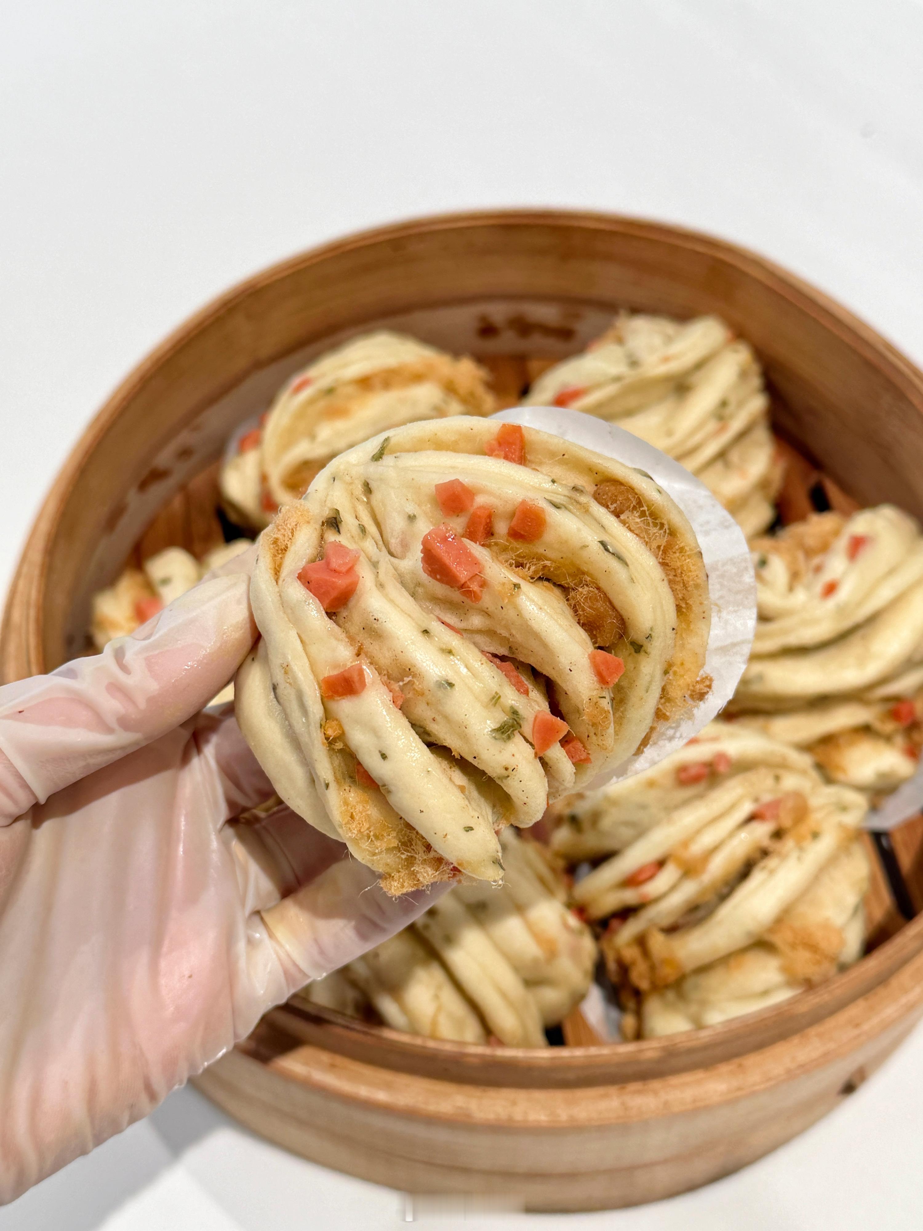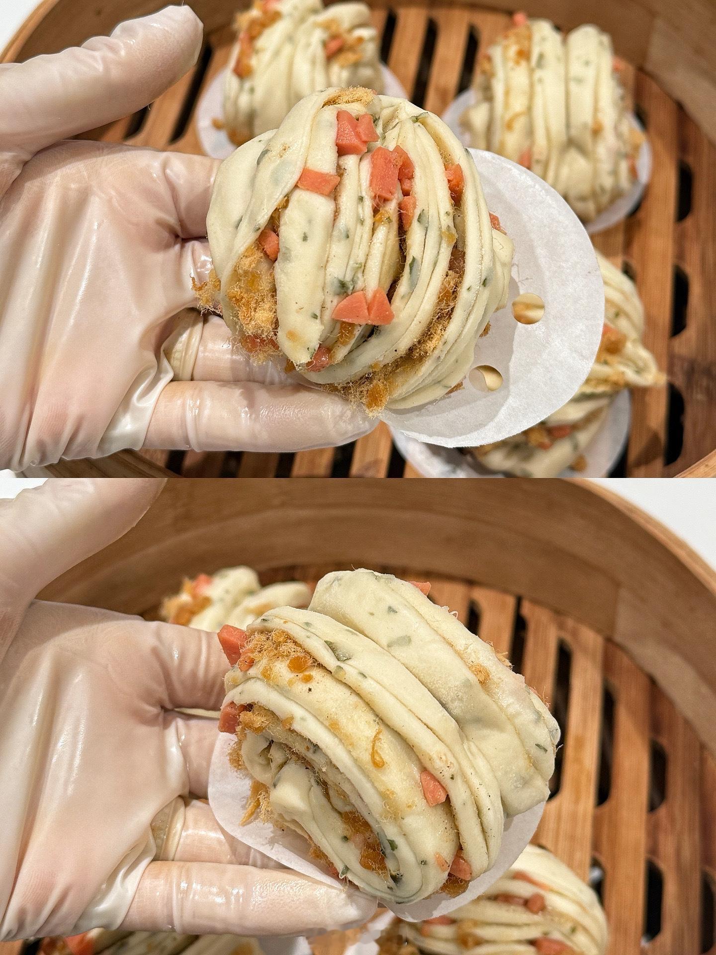 我可太会做馒头了!这个葱香蛋黄肉松花卷,蒸的时候还以为我在烤面包南瓜+蛋黄+肉松