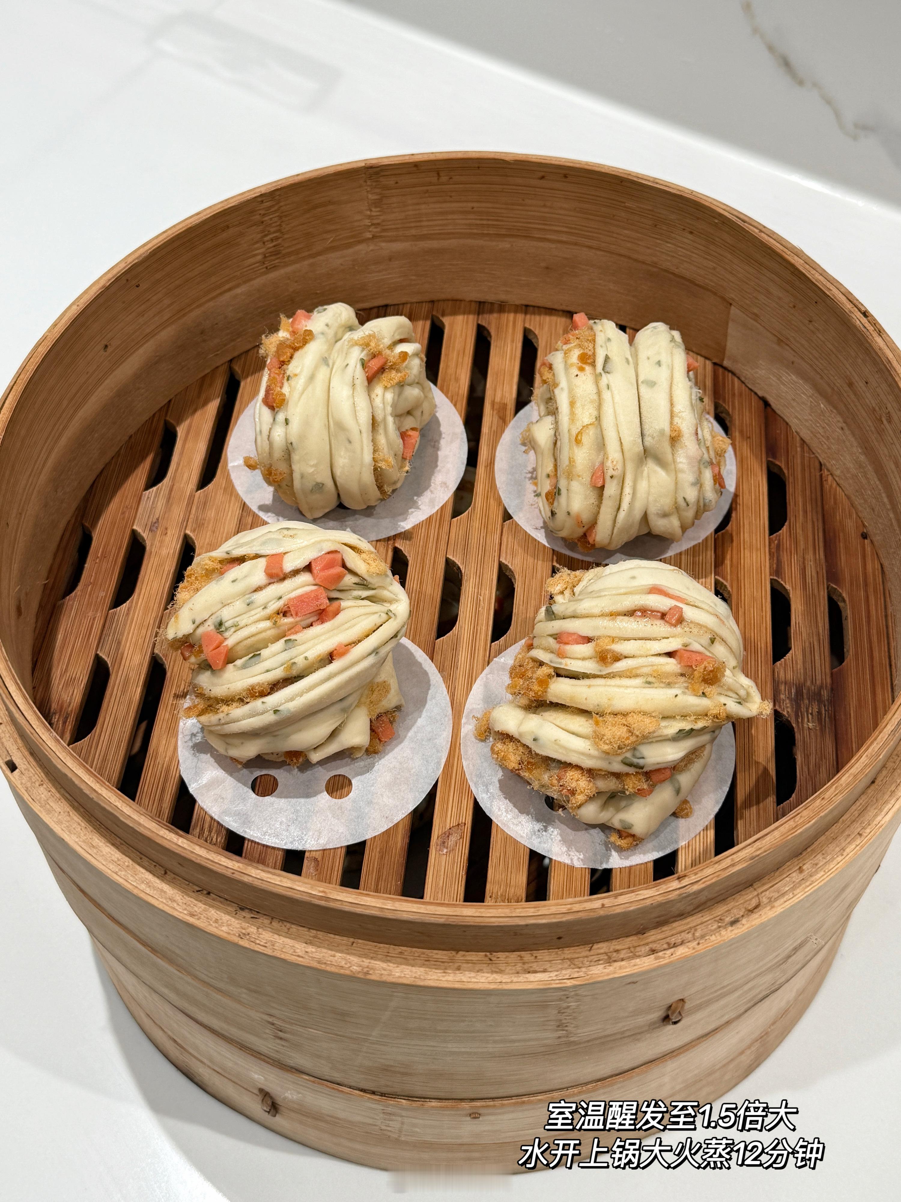 周末睡个懒觉,起床蒸了一锅香葱火腿肉松花卷!