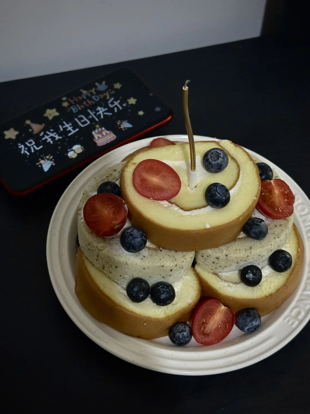 偶然刷到电视剧同款蛋糕,用瑞士卷做的,觉得好有创意! 这不到了自己生日,当然得自己动手来做一个 瑞士卷叠叠乐,加点水果装饰一下,好简单[偷笑R] 越长大越喜欢简单的一切 没什么不一样 是个工作日 和往常一样平静 是我喜欢状态 已经过了热烈盼望生日的年纪 新的一岁依然会内心丰盈 赤诚勇敢 感受多变的、有趣的人生