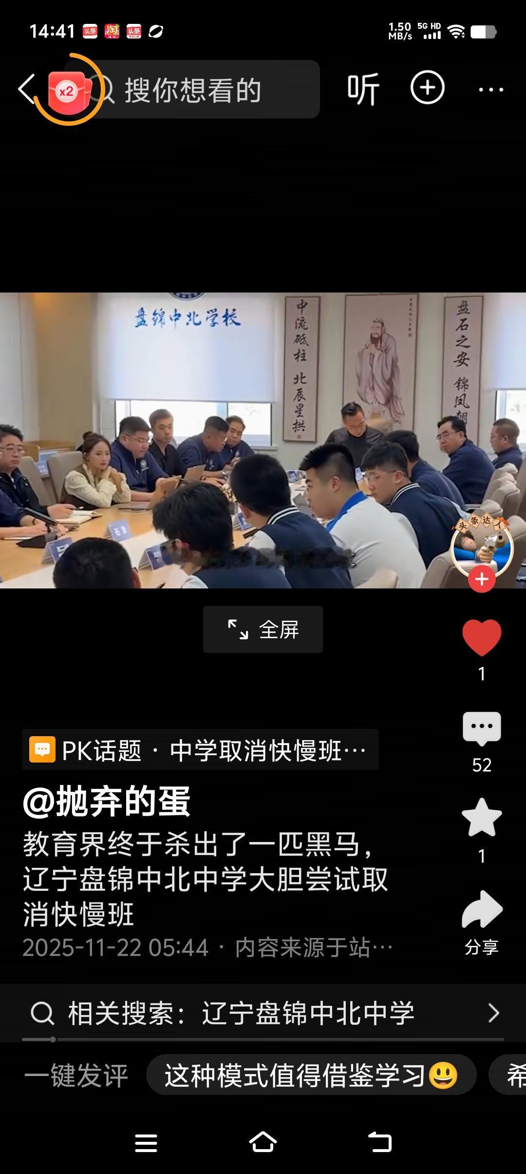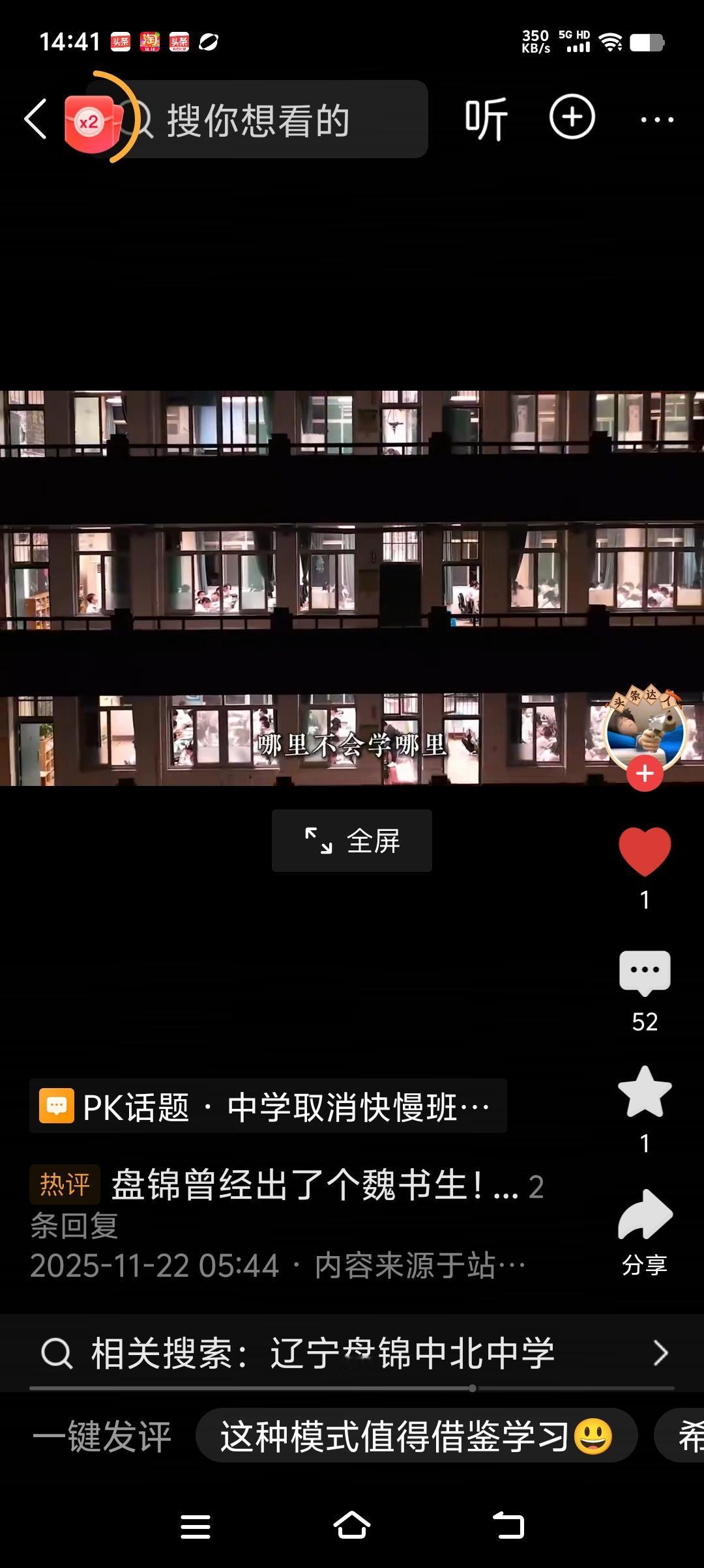 真是开眼界! 辽宁盘锦东北中学因材施教落到实处, 这是最好扬长避短! 这个学校的做法是打破了传统的快慢班区分, 按照学科可来进行有针对性的辅导。 一个学生如果数学学得厉害拔尖, 就去数学的尖子班去挑战难题, 如果英语很差,你就去英语的基础班去从最基础的英语学起,避免了学生基础不牢,即便再努力也是徒劳的! 这样给学生补短板发挥学生的特长, 让差的学科能够从基础查缺补漏,能够吃得饱,逐渐的赶上来! 让特别擅长的学科能够吃的好, 满足他们挑战高难题目的需求。 也就是说一个 学生可以参加顶级班,也可以参加基础班, 不按人分班,而是你的学科和成绩自动的选择班级。 实行的是小班化教学,每个班20左右个学生, 老师辅导起来能够面面俱到不吃力, 确实把因材施教落到实处。 这样的模式教学, 可以让学生在短期内把自己的瘸腿学科赶上来,让自己的拿手科目有更好的发展! 期待他们在高考中能够取得好成绩,期待他们能够多出全面发展的有用人才,希望他们的成功经验能够让更多的学校学习到!