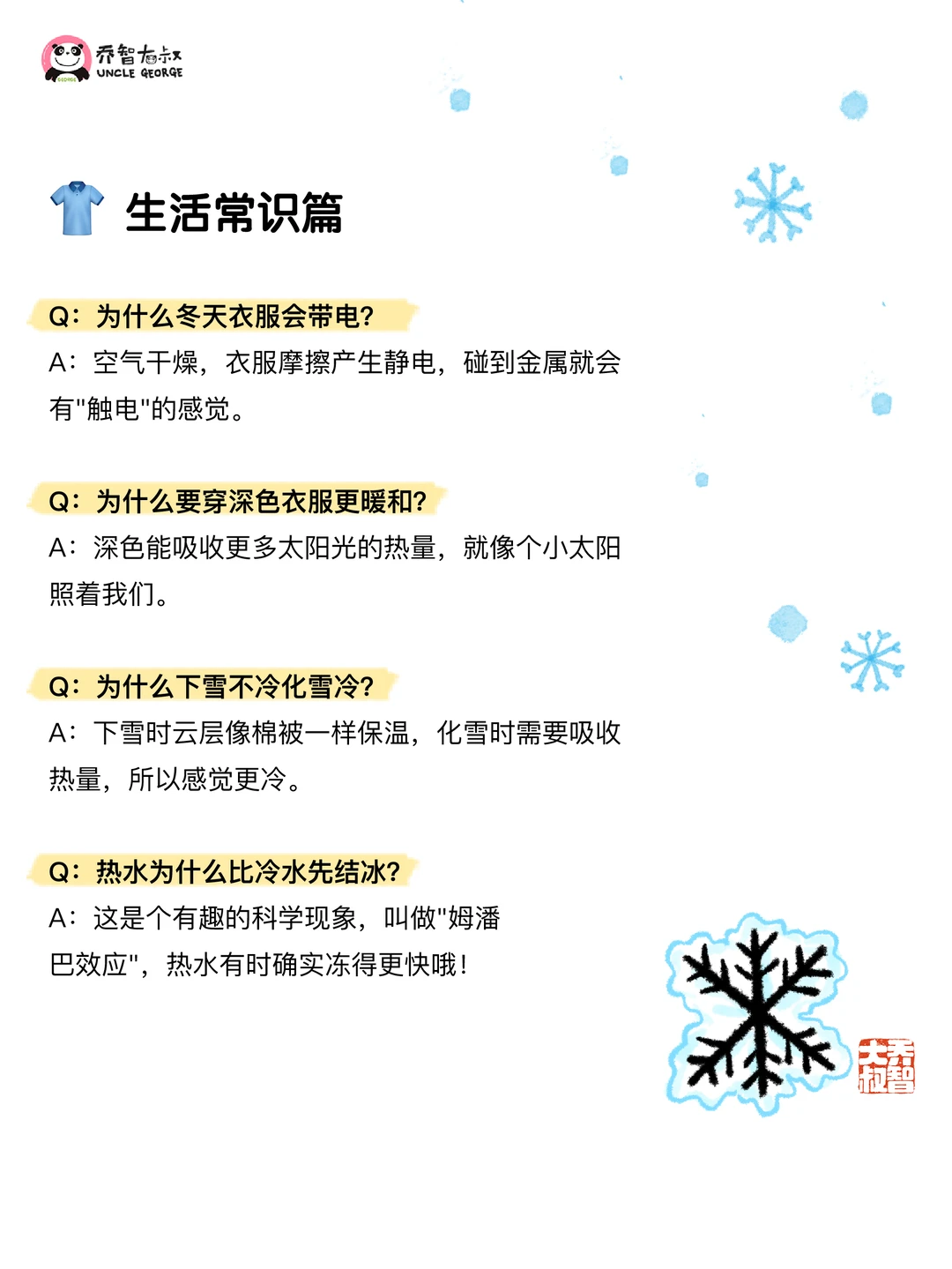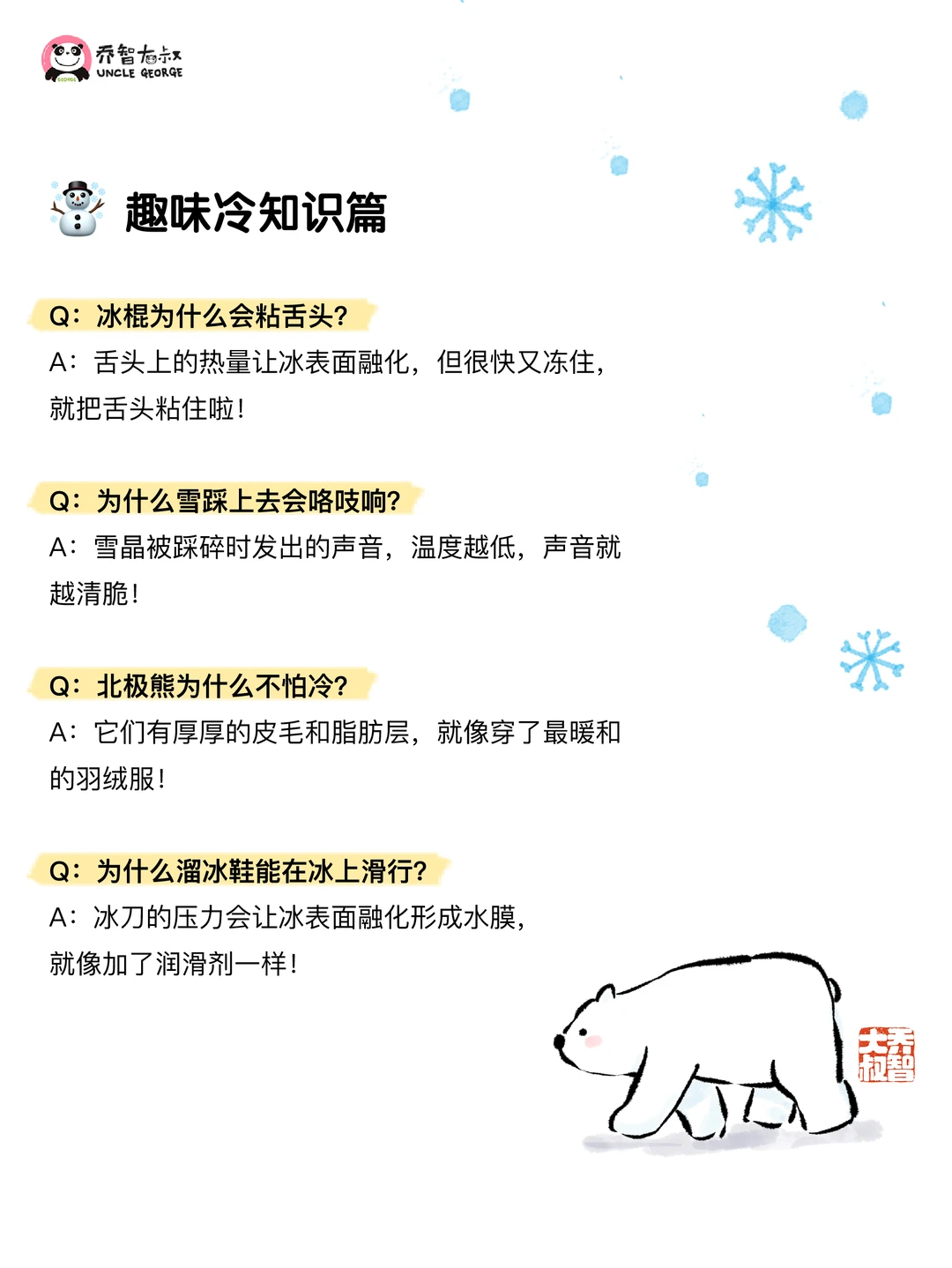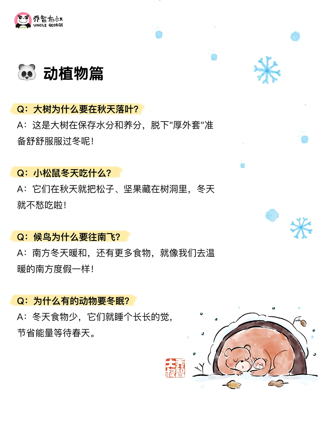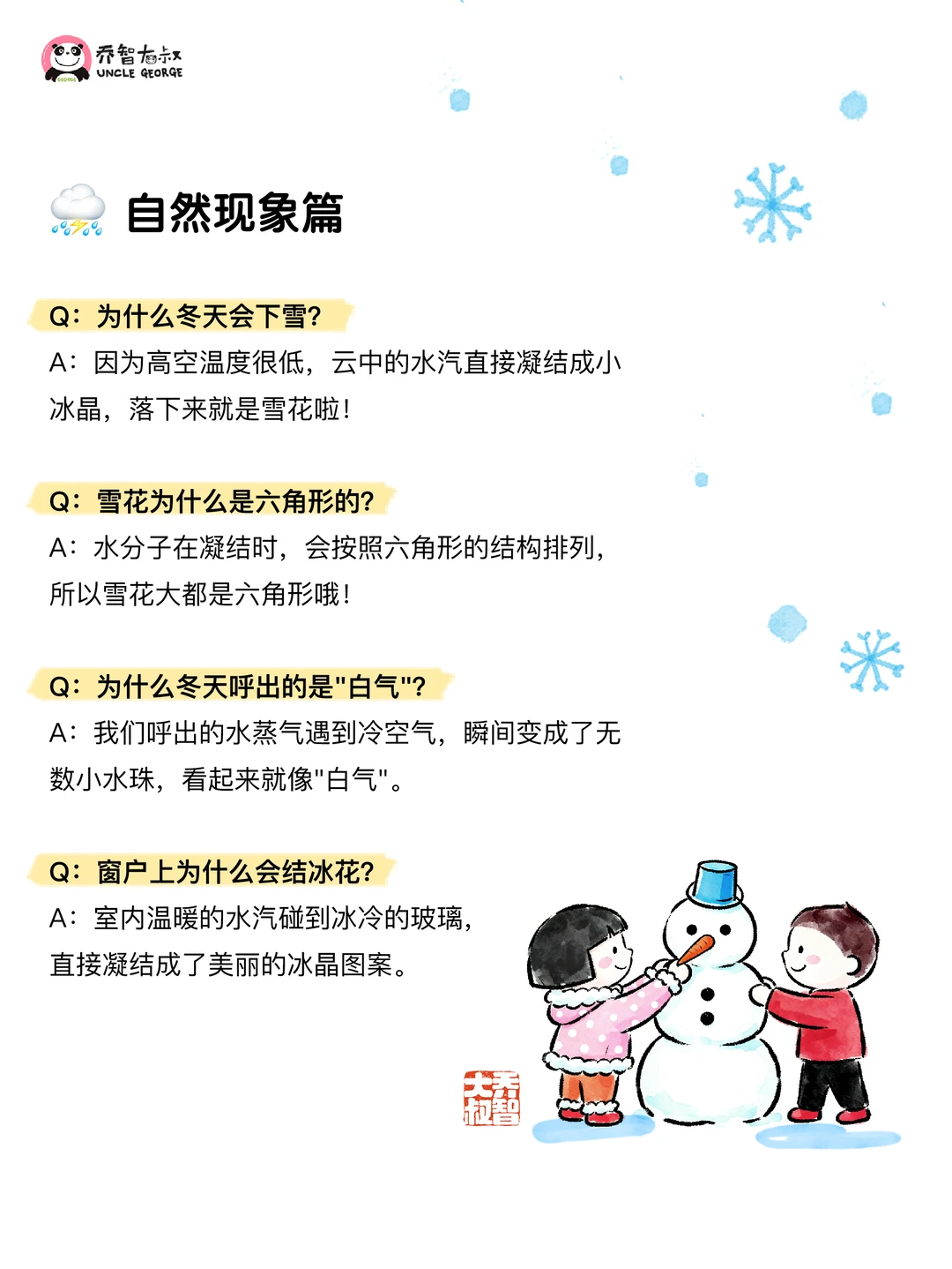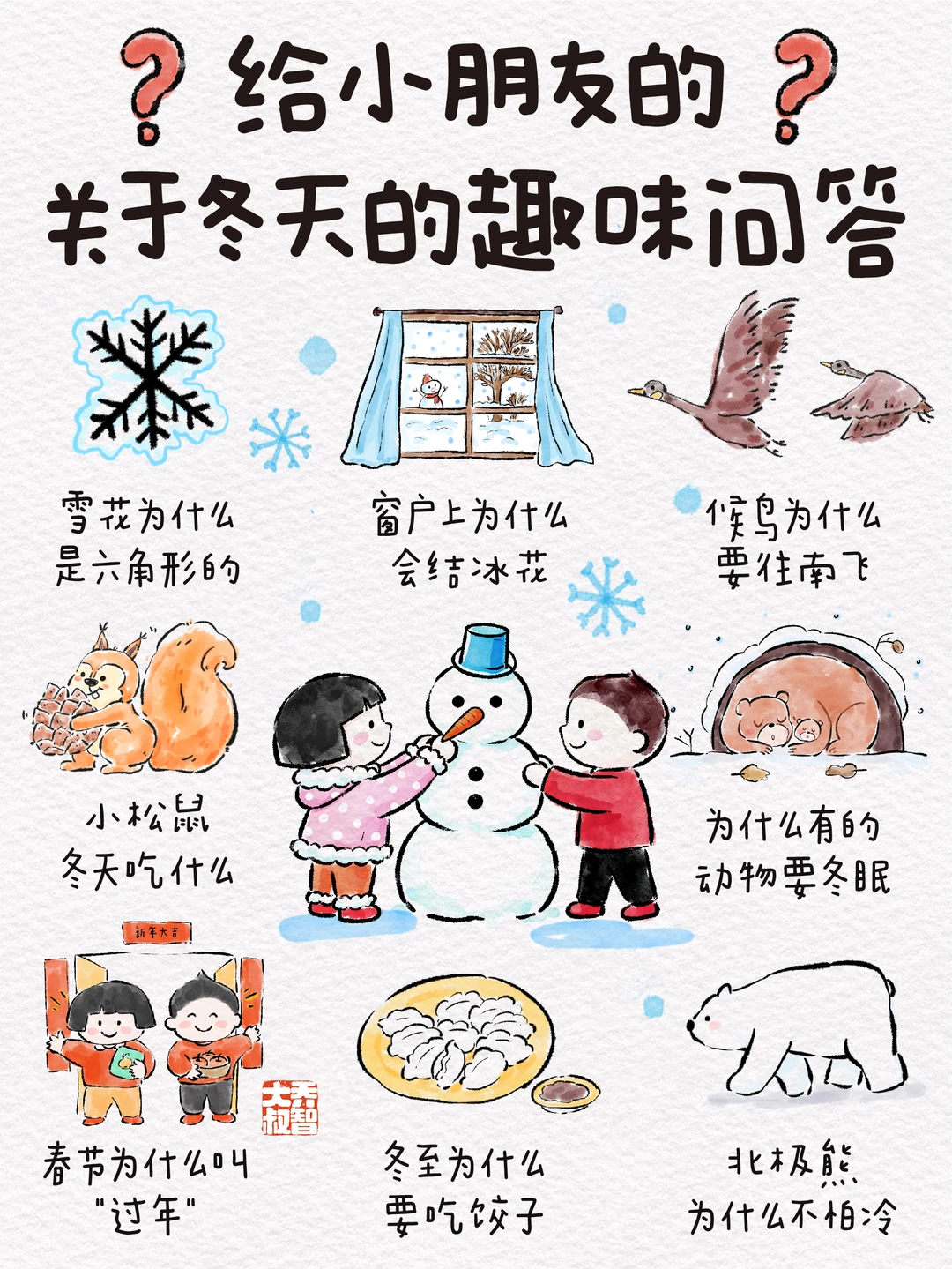还记得小时候 对着窗户哈气画画的时光吗? 现在轮到我们 把冬天的美好讲给孩子听 20个冬日主题问答 像20个温暖的小故事 带孩子认识这个银装素裹的季节 涵盖自然、动物、生活现象 让孩子的好奇心得到满足 每个问题都配有童趣解答 用孩子能懂的语言讲述科学 激发探索世界的热情